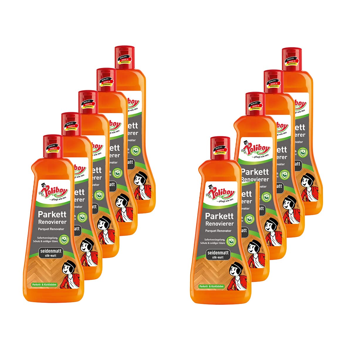 Poliboy - Parkett Renovierer Seidenmatt - für strapazierte Holz- und Korkböden - Bodenreinigung - 10er Pack - 10x500ml (5 Liter) - Made in Germany