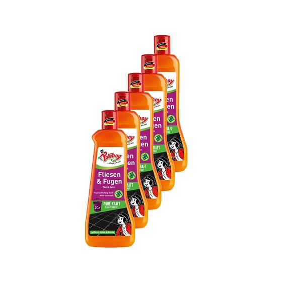 POLIBOY Fliesen & Fugen Reiniger - Bodenreiniger mit Oxy-Power für Fliesen - Wischkonzentrat für innen und aussen - 5x 500 ml - Made in Germany