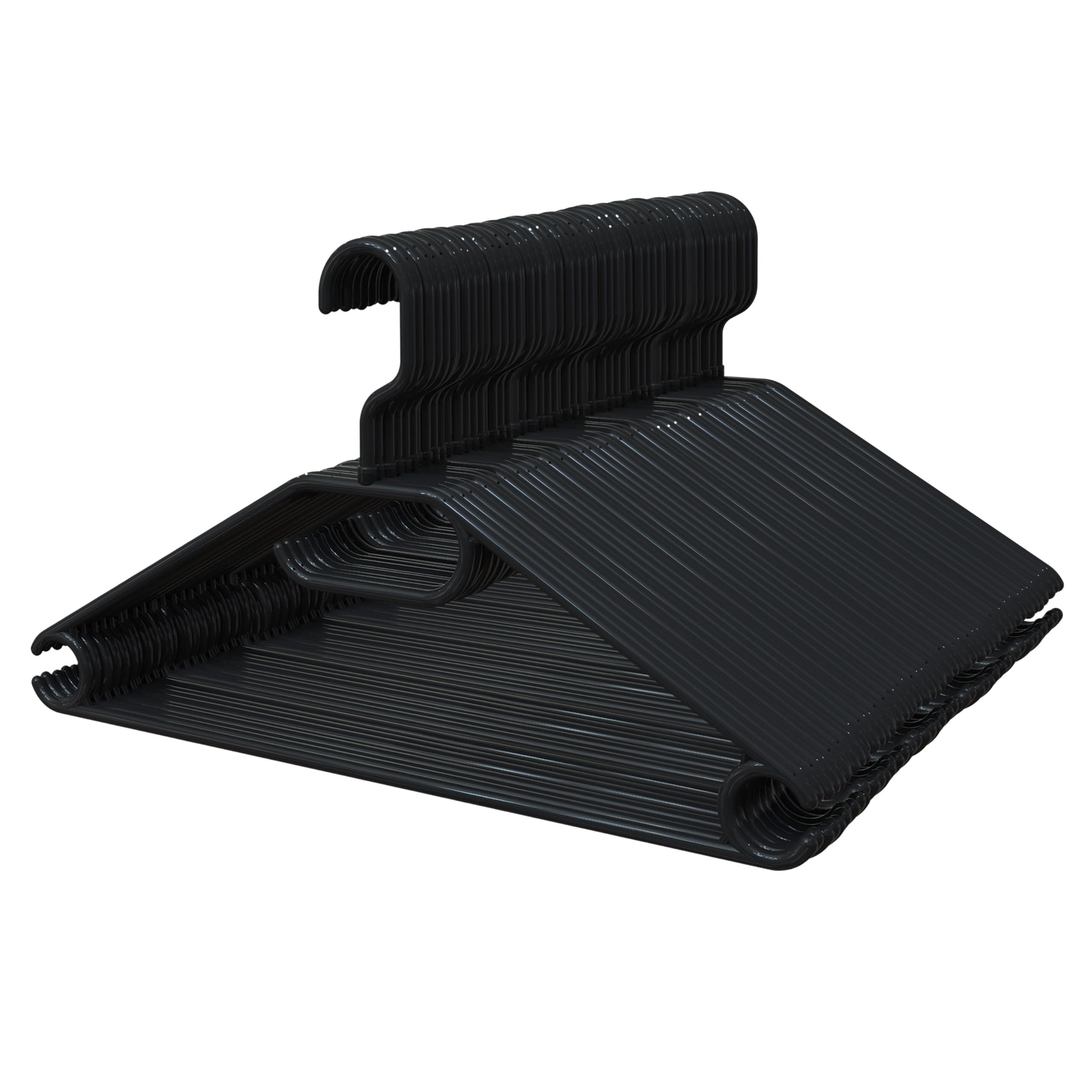 PORTENTUM Kleiderbügel aus 100% Recyceltem Kunststoff, 50 Stück, Schwarz. Für Alle Kleidungsarten, 360º Drehbarer Haken, Platzsparend, Zubehörhalter, Haken für Kleider, Blusen & Röcke, Made in Spain