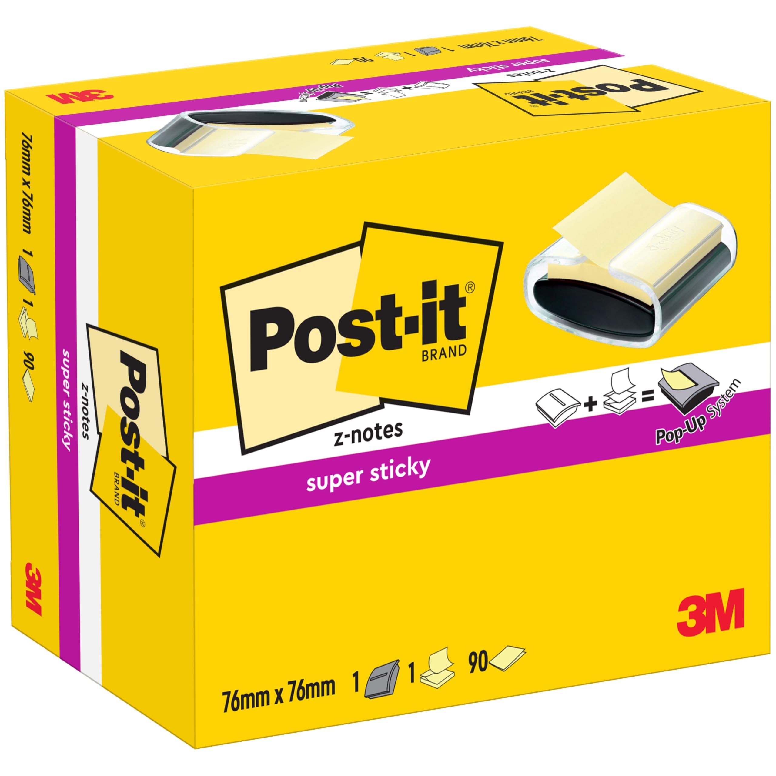 Post-it Z-Notes PRO Abroller, Schwarz und 1 Block Super Sticky Z-Notes, Gelb, 76 mm x 76 mm - für Schule, Zuhause und Büro