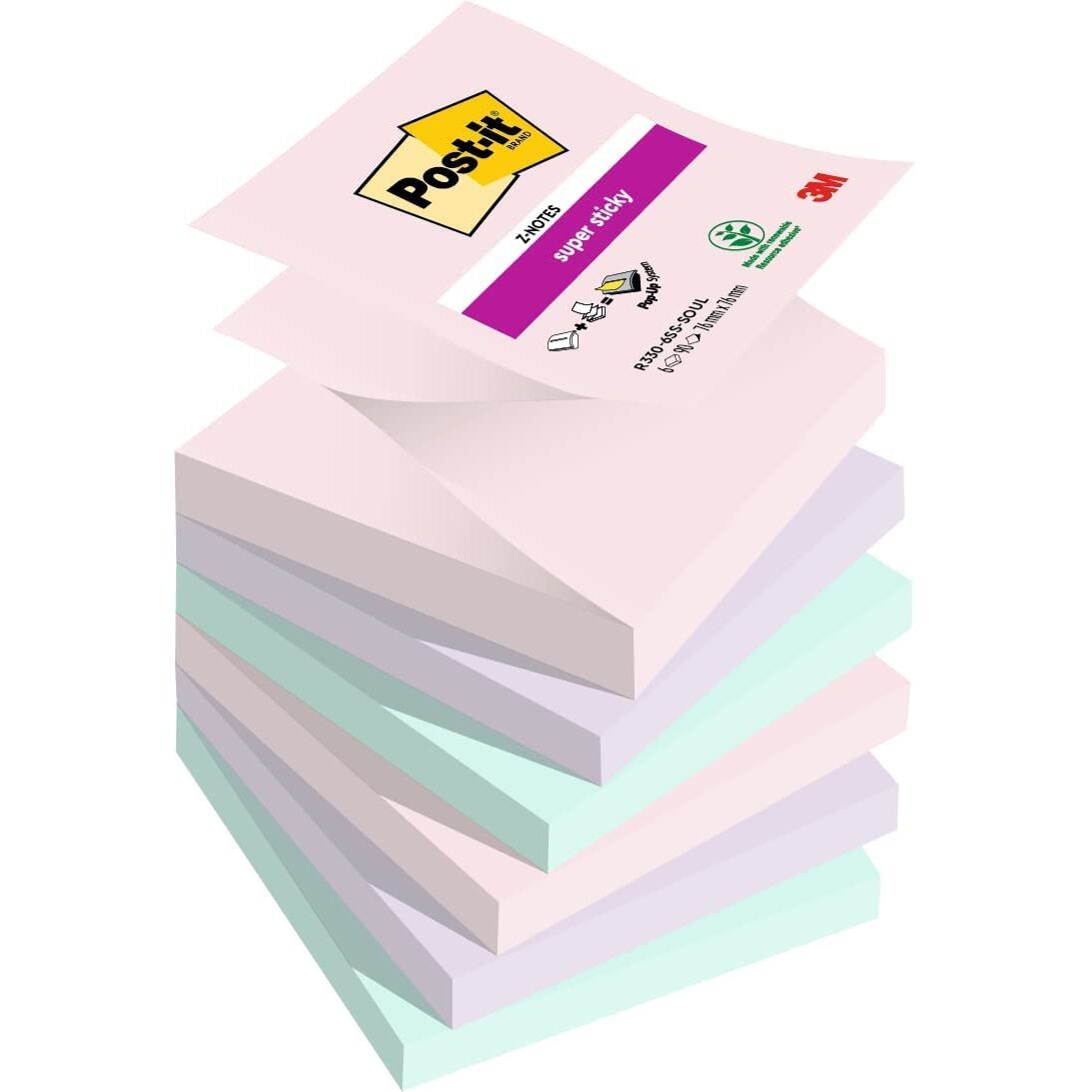 Post-it Super Sticky Z-Notes Soulful Collection, Packung mit 6 Blöcken, 90 Blatt pro Block, 76 mm x 76 mm, Pink, Lila, Grün - Extra-stark klebende Notizzettel für Notizen, To-Do-Listen & Erinnerungen