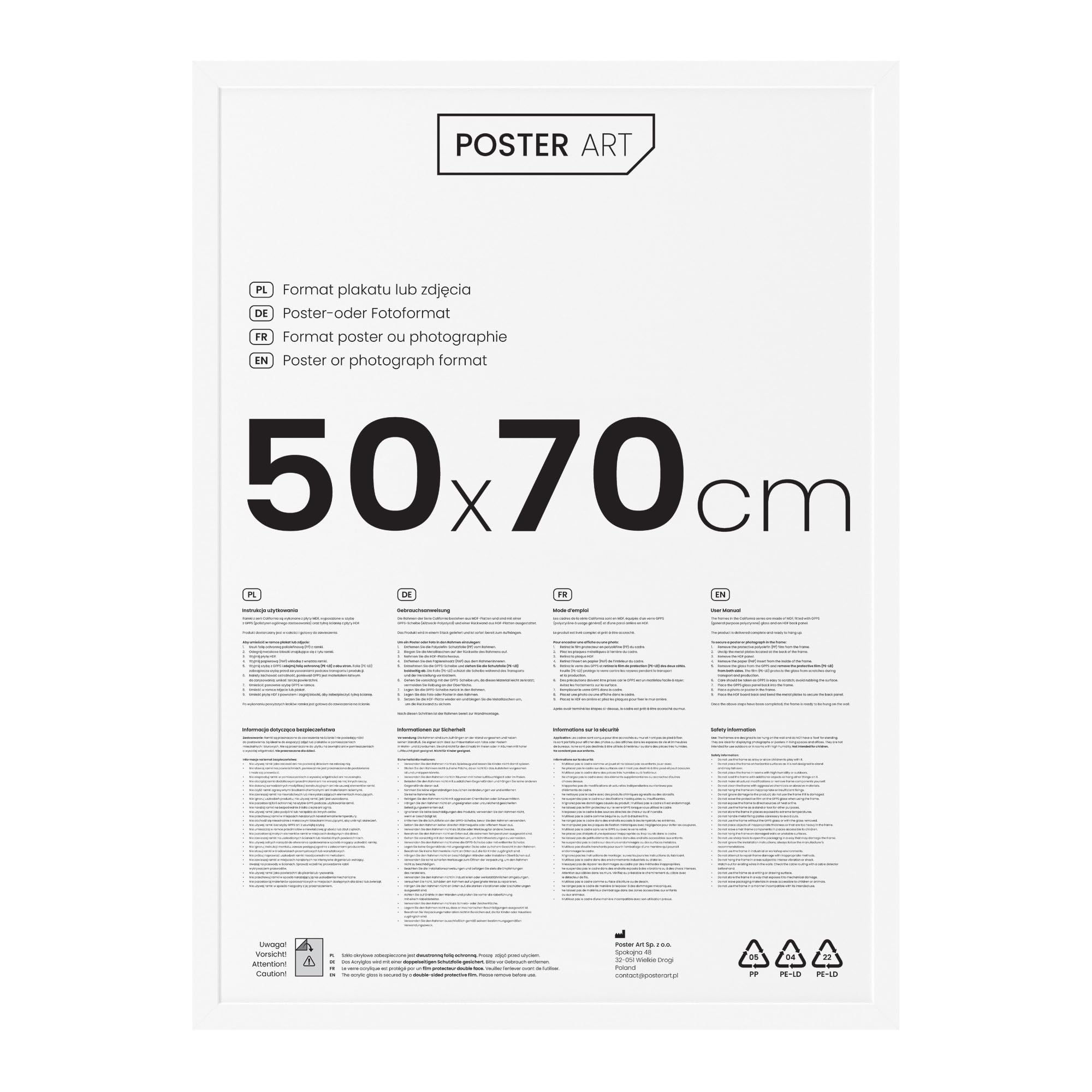Das POSTER ART Angebot umfasst eine breite Palette von Lösungen, die sich ideal zum Einfassen von Fotos, Gemälden, Grafiken usw. eignen. In jeder Produktionsphase werden alle Artikel mehrfach kontrolliert, um zu vermeiden, dass fehlerhafte Stücke verschickt werden. Unsere Produkte sind in sechs Farben und in Grössen von 13x18 cm bis 50x70 cm erhältlich. Der Preis beinhaltet nicht die abgebildeten Poster.