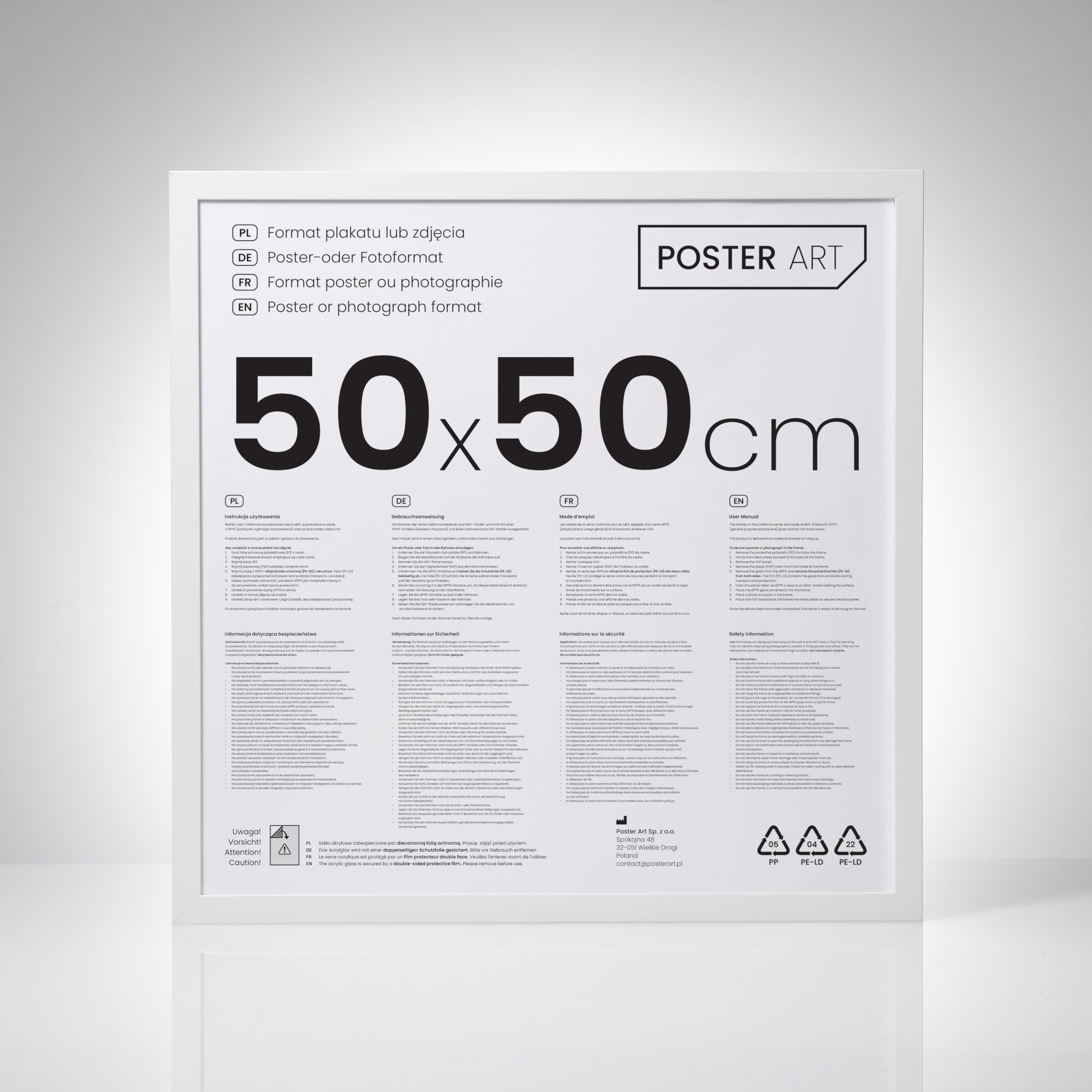 Das POSTER ART Angebot umfasst eine breite Palette von Lösungen, die sich ideal zum Einfassen von Fotos, Gemälden, Grafiken usw. eignen. In jeder Produktionsphase werden alle Artikel mehrfach kontrolliert, um zu vermeiden, dass fehlerhafte Stücke verschickt werden. Unsere Produkte sind in sechs Farben und in Grössen von 13x18 cm bis 50x70 cm erhältlich. Der Preis beinhaltet nicht die abgebildeten Poster.