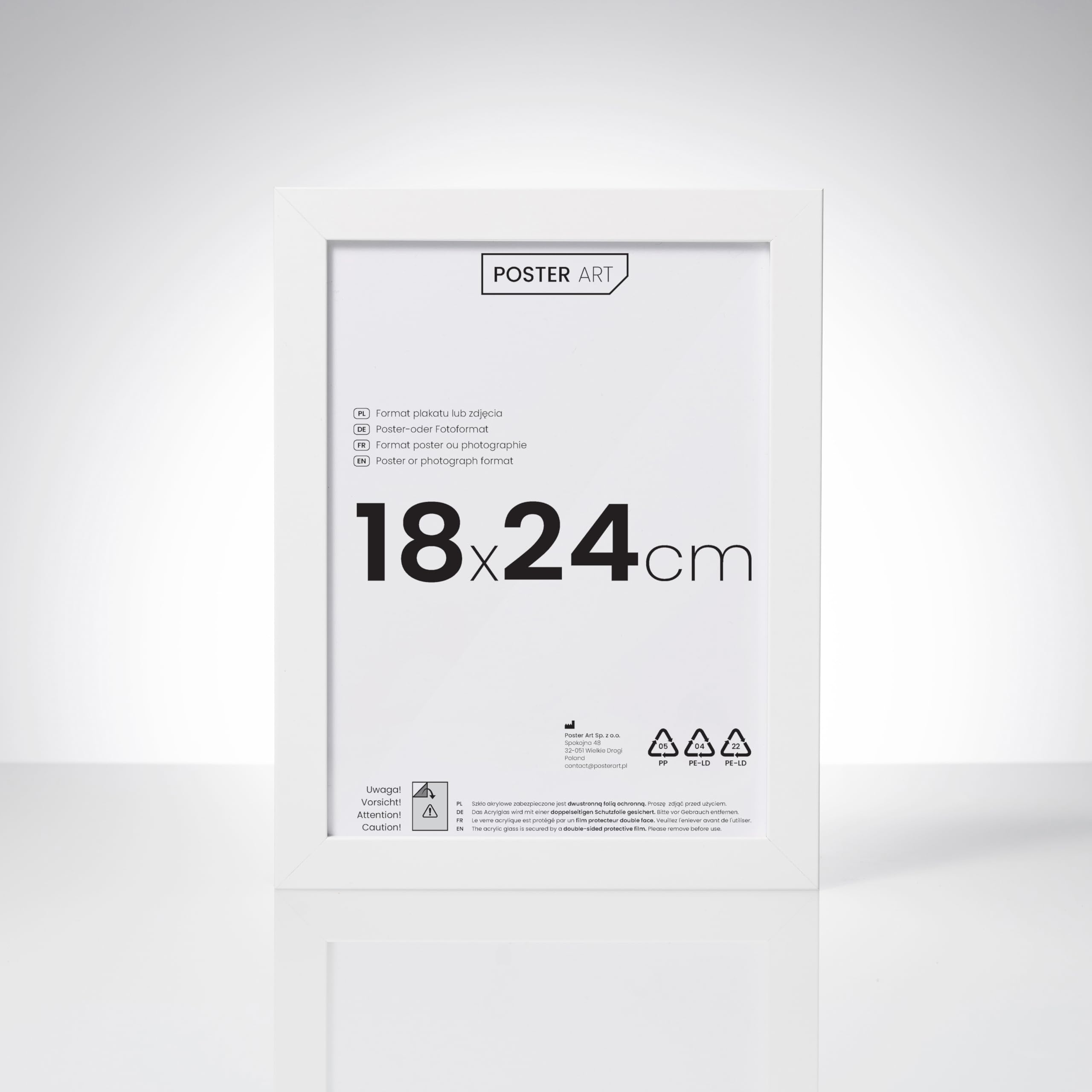 POSTER ART California Bilderrahmen zum Aufhängen aus MDF und Acrylglas - Wand Bilderrahmen Moderner Fotorahmen - Weiss 18x24 cm
