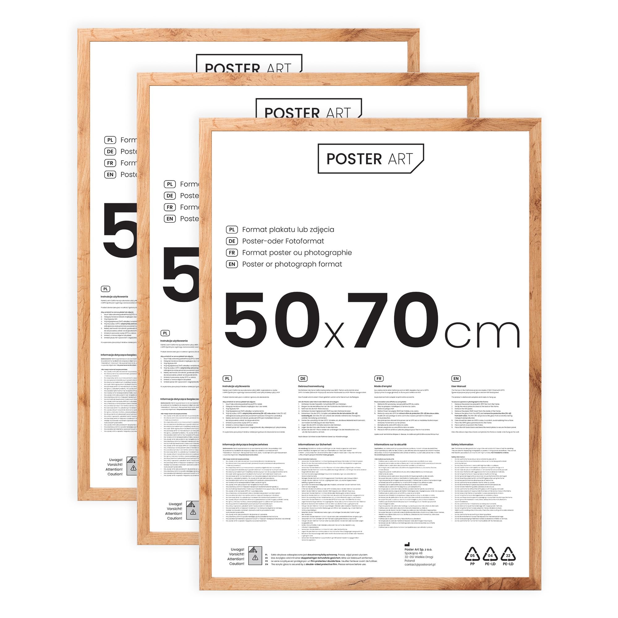 POSTER ART Bilderrahmen Set 3 Stück 50x70 cm Wotan Eiche San Diego | Zum Aufhängen aus MDF und Acrylglas | Wand Bilderrahmen Moderner Fotorahmen | Posterrahmen 50x70 cm