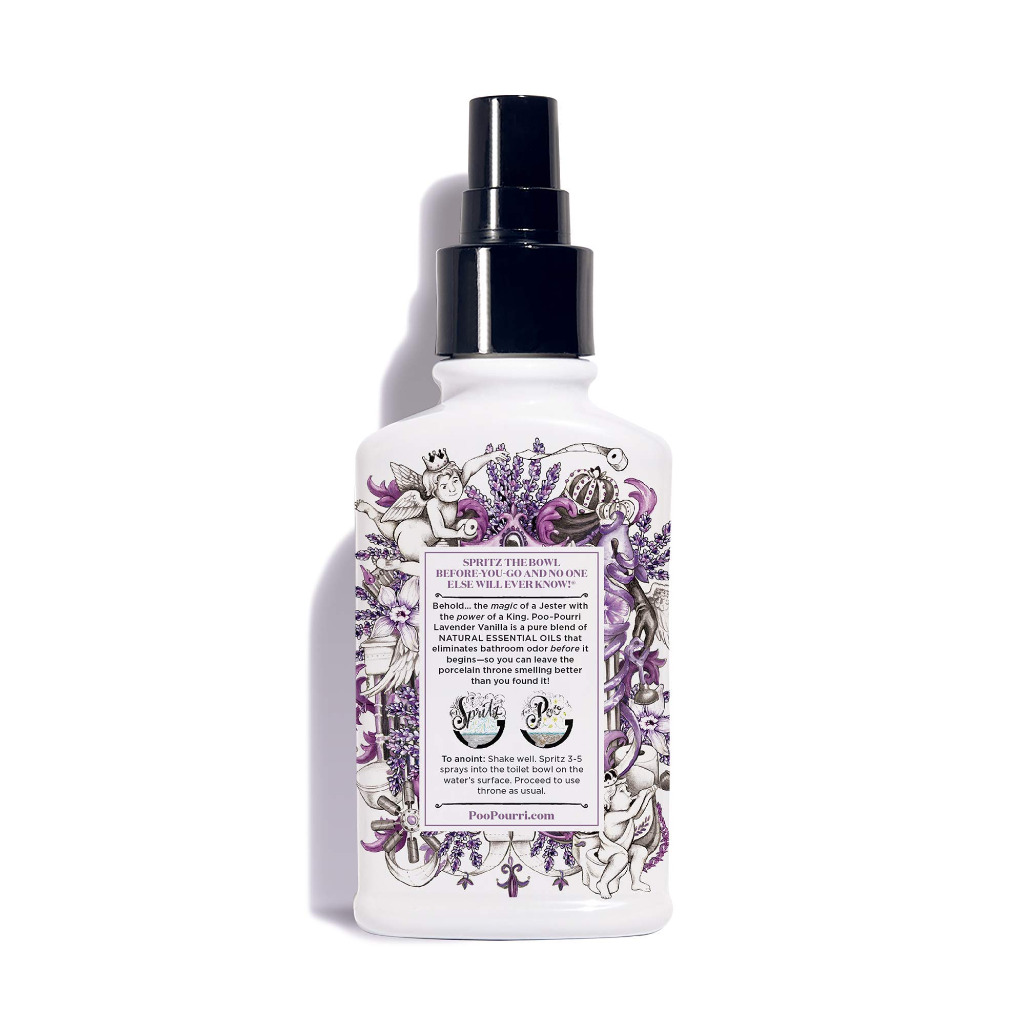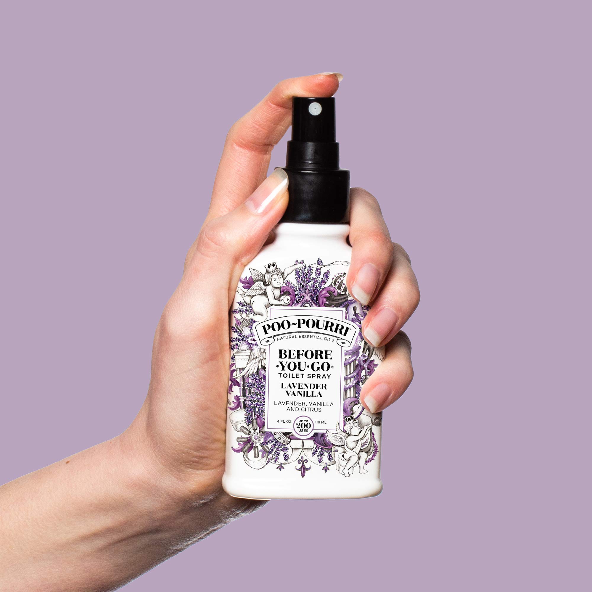 PooPourri fängt den Geruch Nr. 2 ein, bevor er beginnt. Die geheime Formel von PooPourri schafft eine Barriere auf der Wasseroberfläche – fängt Gerüche ein, bevor er beginnt. Befreien Sie sich von Badezimmergeruch, von hemmenden Sorgen und schädlichen Inhaltsstoffen. PooPourri Lavendel-Vanille ist eine beruhigende Mischung aus natürlichen ätherischen Ölen von Lavendel, Vanille und Zitrusfrüchten.