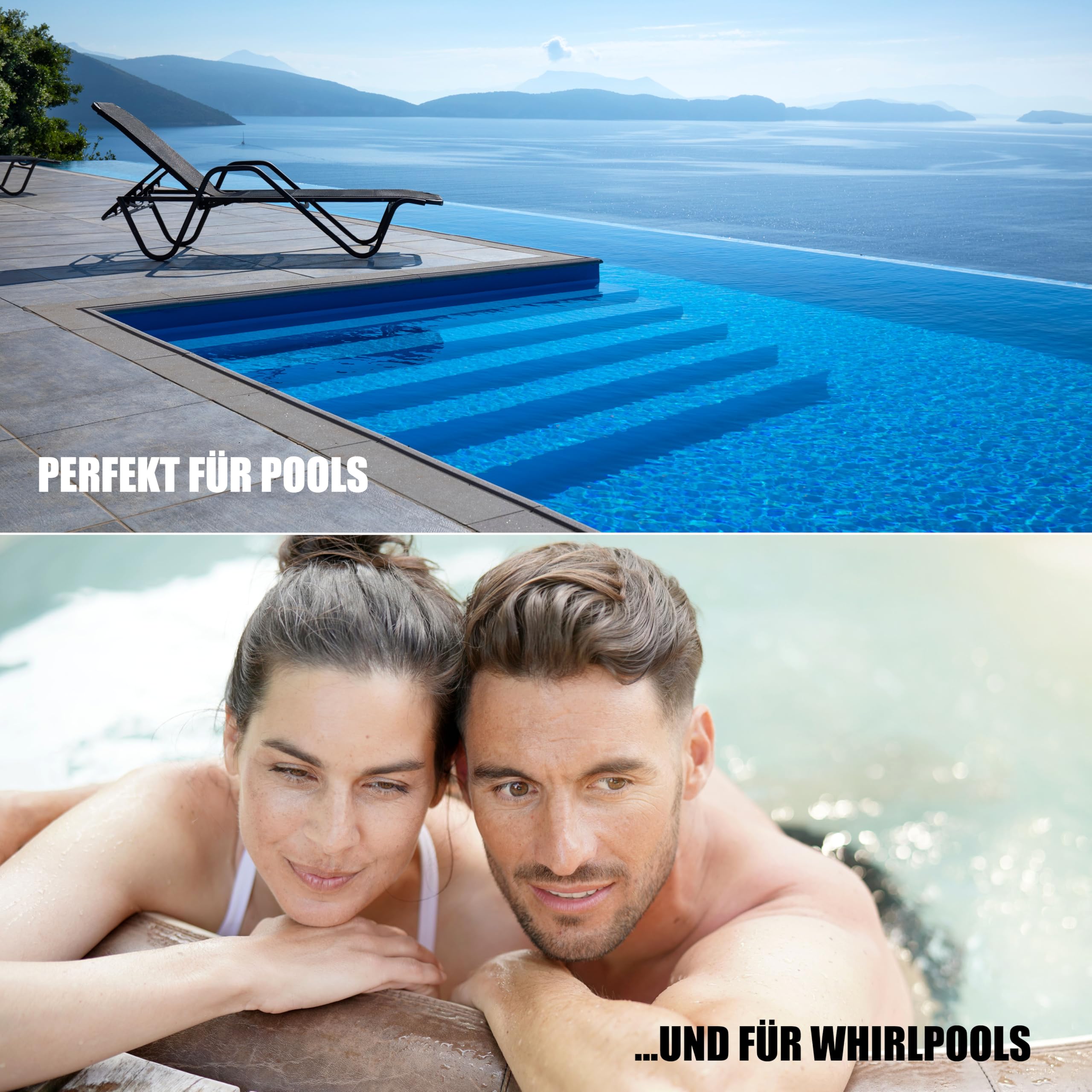 • Testtabletten zur Bestimmung der wichtigsten Wasserwerte im Pool und Whirlpool