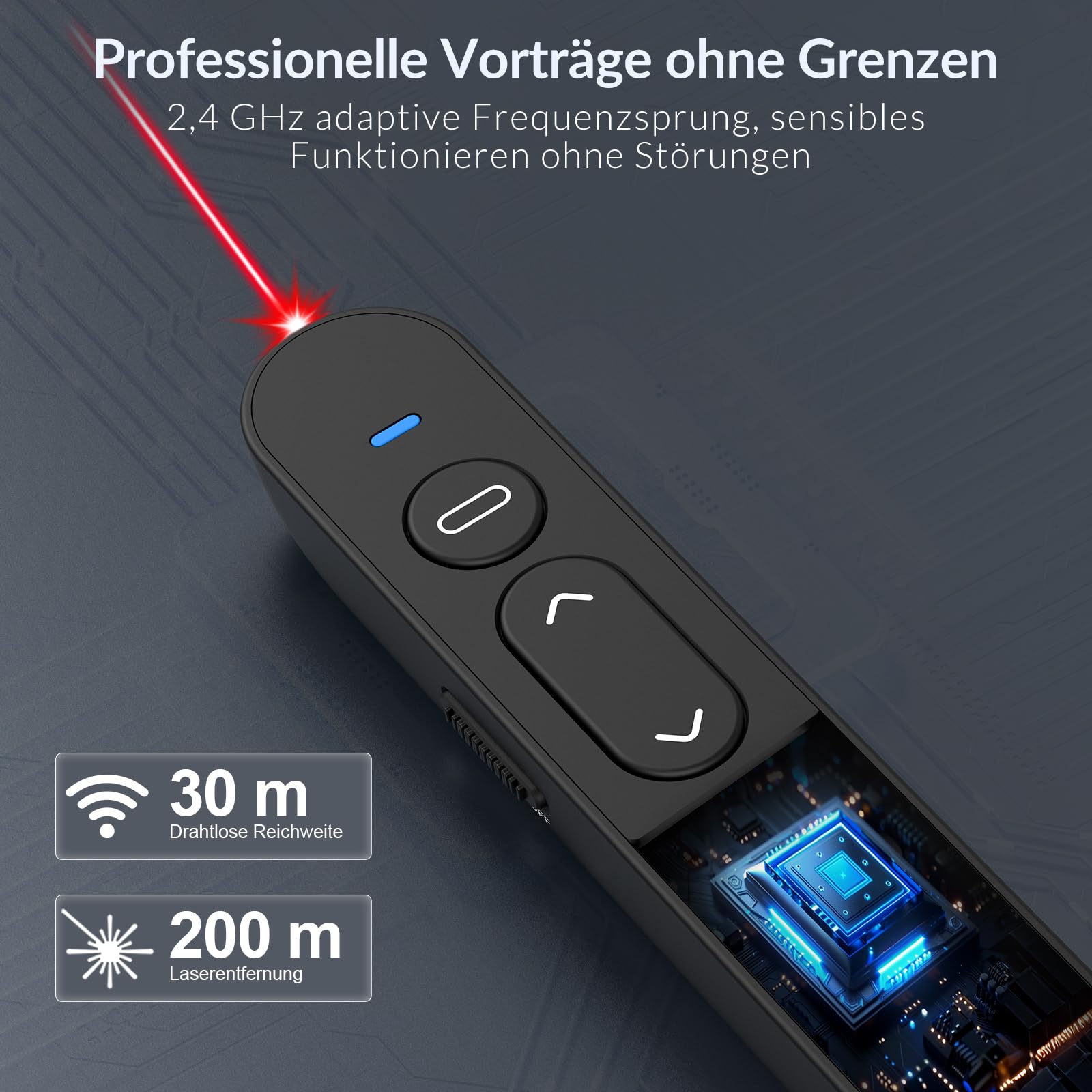 • 【Langer Steuerungsabstand】 Ausgestattet mit einem hochleistungsfähigen Mikrochip, der eine stabile und störungsfreie Verbindung mit einem drahtlosen Bereich von bis zu 100 Metern gewährleistet. Sie können sich frei bewegen, mit dem Publikum interagieren und sogar vom Rednerpult weggehen, ohne sich um Signalverlust sorgen zu müssen. Mit dem roten Presenter wird der gesamte Raum auf Ihre wichtigsten Punkte konzentriert.
