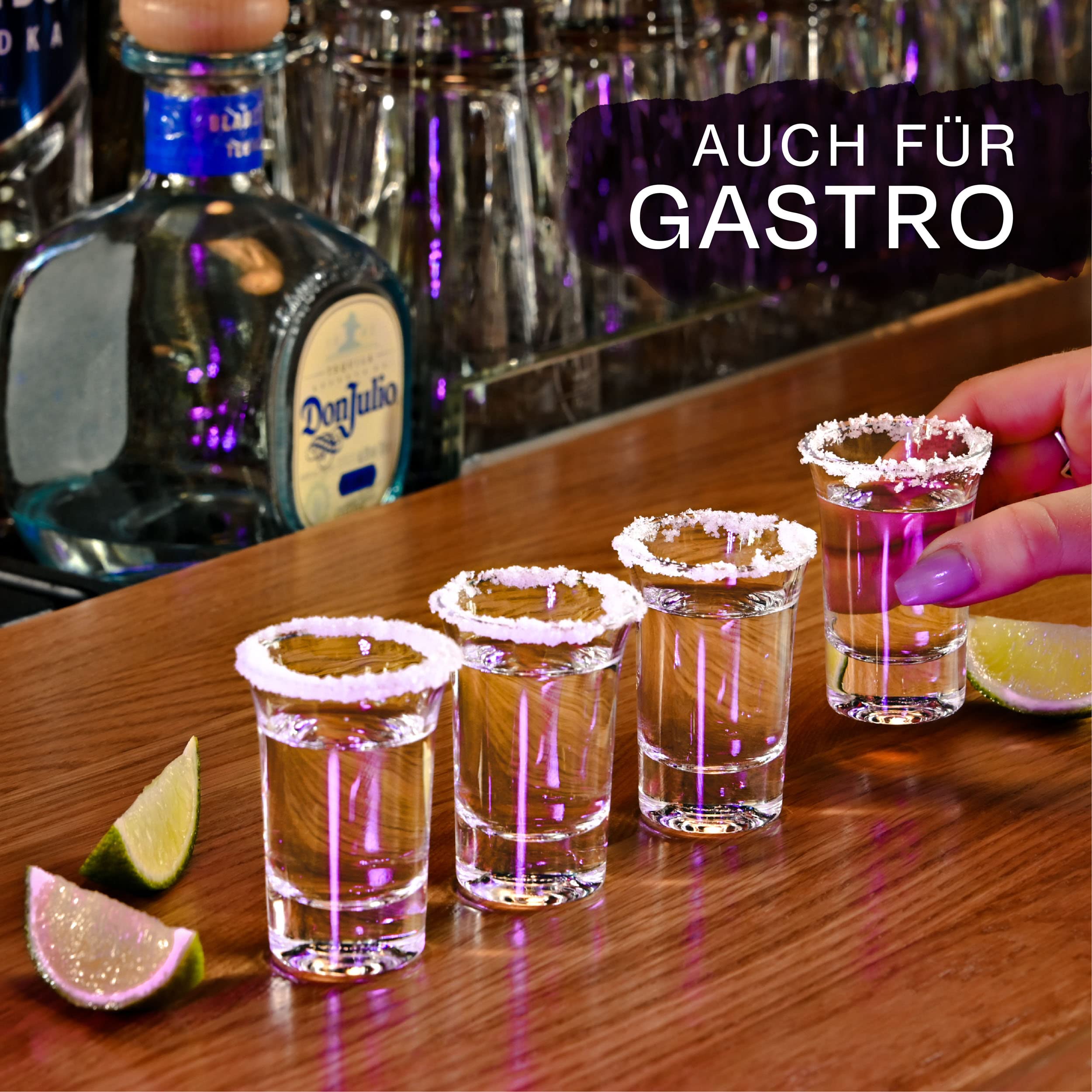 Praknu 24 Schnapsgläser aus Glas 4cl - Spülmaschinenfest - Standfest dank dickem Boden - Shotgläser für jede Party