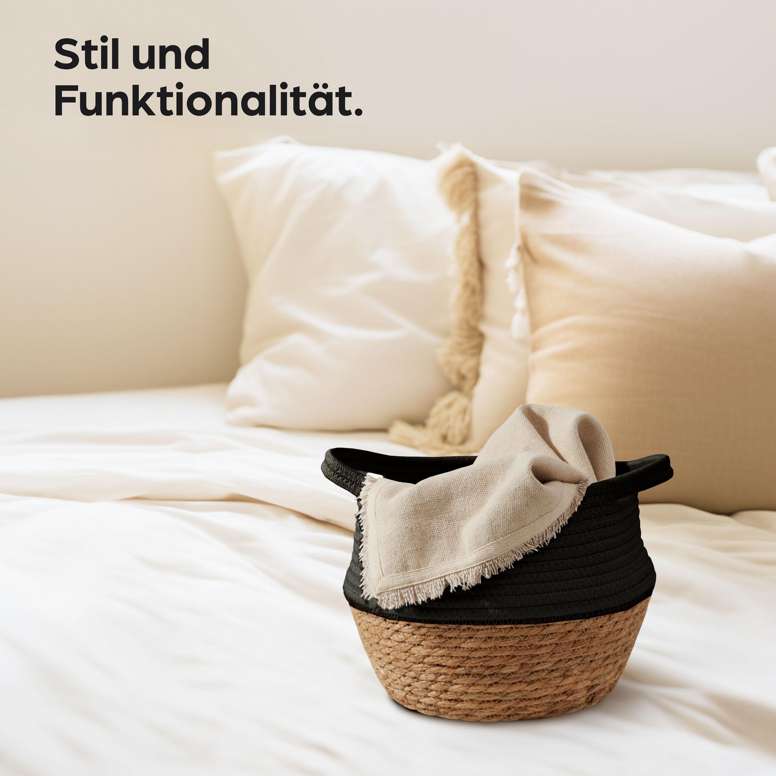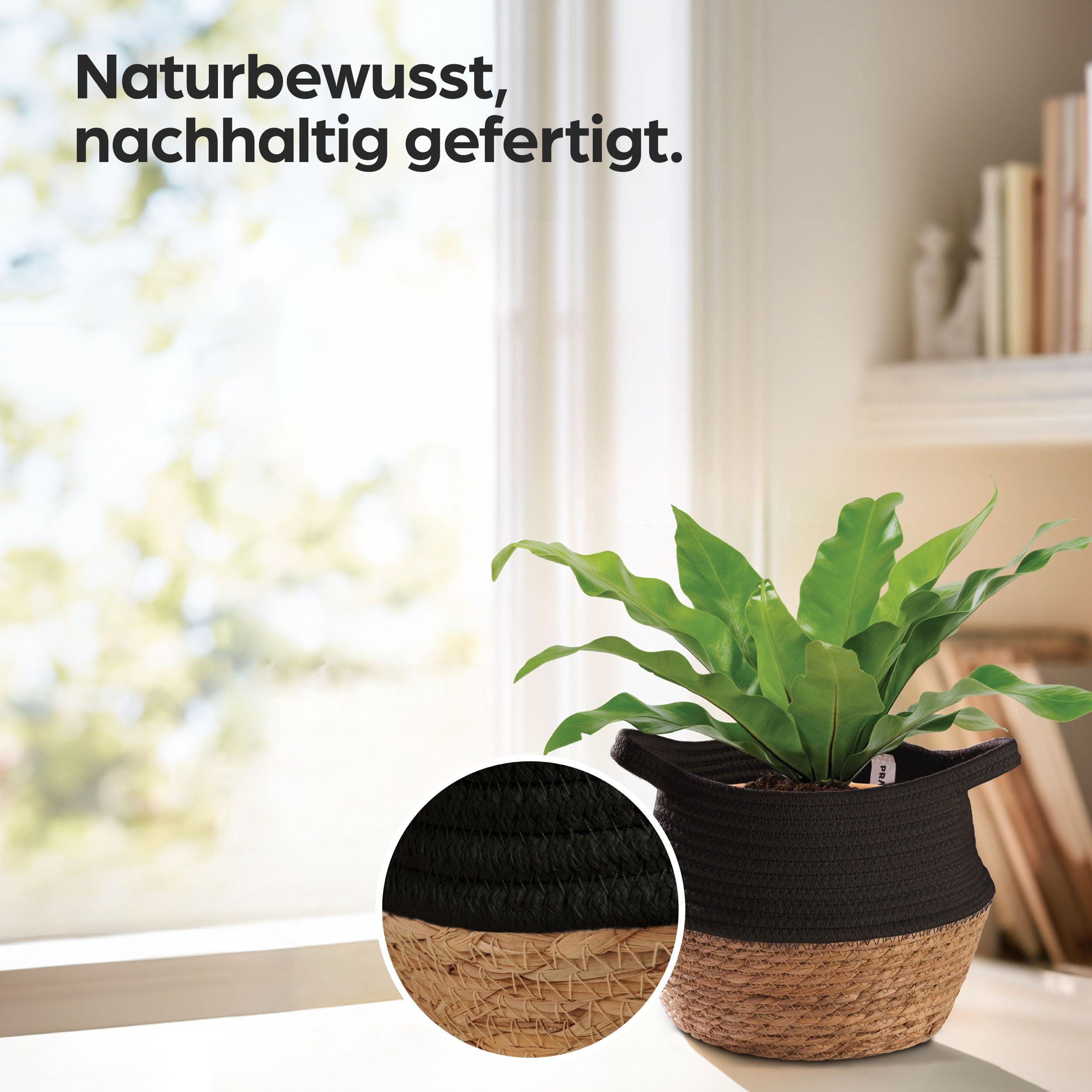 Praknu Deko Blumentopf Übertopf - Seegras Geflochten mit Baumwolle Ø 20cm - Pflanzkorb Boho Schwarz