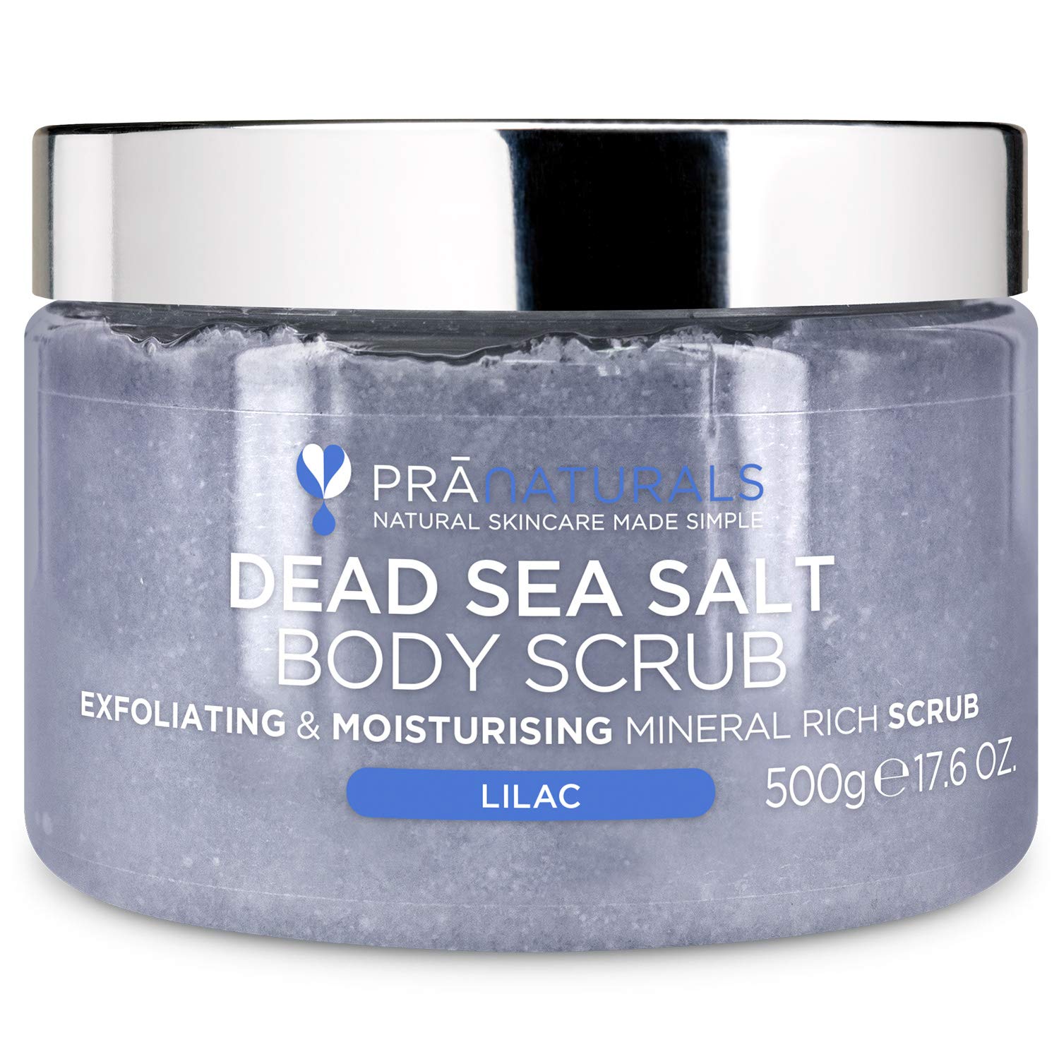 PraNaturals Körperpeeling mit Salz aus dem Toten Meer 500g – Feuchtigkeitsspendend & Pflegend, Natürliche Öle & Mineralstoffe, Vegan, Frei von Parabenen (Lila)