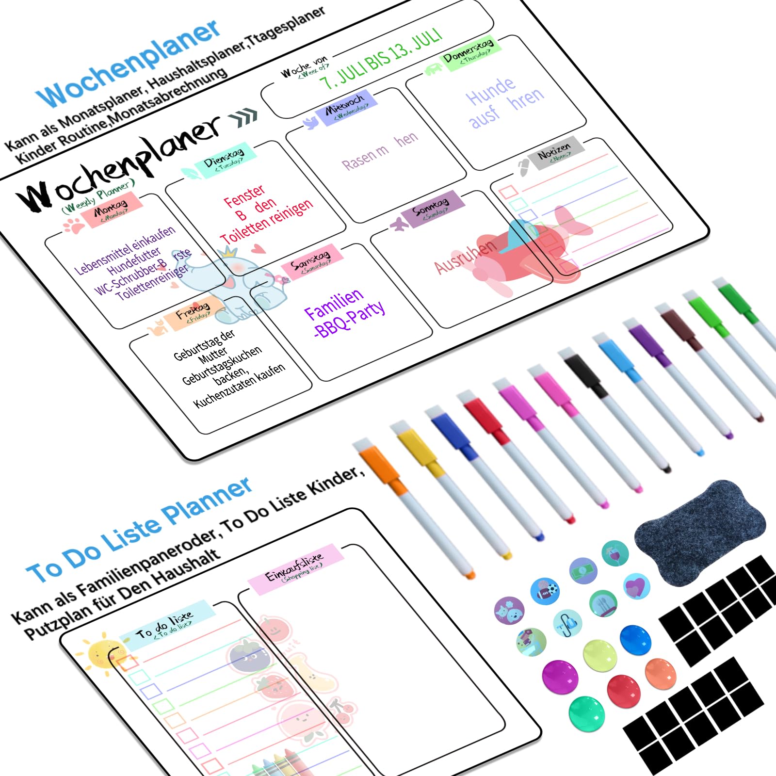 Hinweis: Das magnetische Planungsboard ist hauptsächlich für Kühlschränke und glatte Glaswände konzipiert.