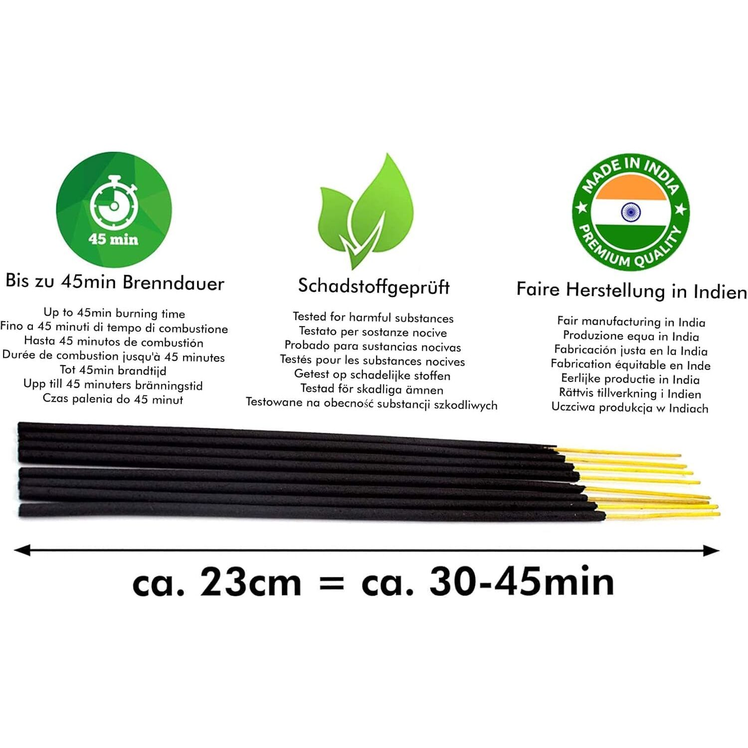 • Jede Packung enthält jeweils 8 Räucherstäbchen mit einer Brenndauer von ca. 30-45 Minuten