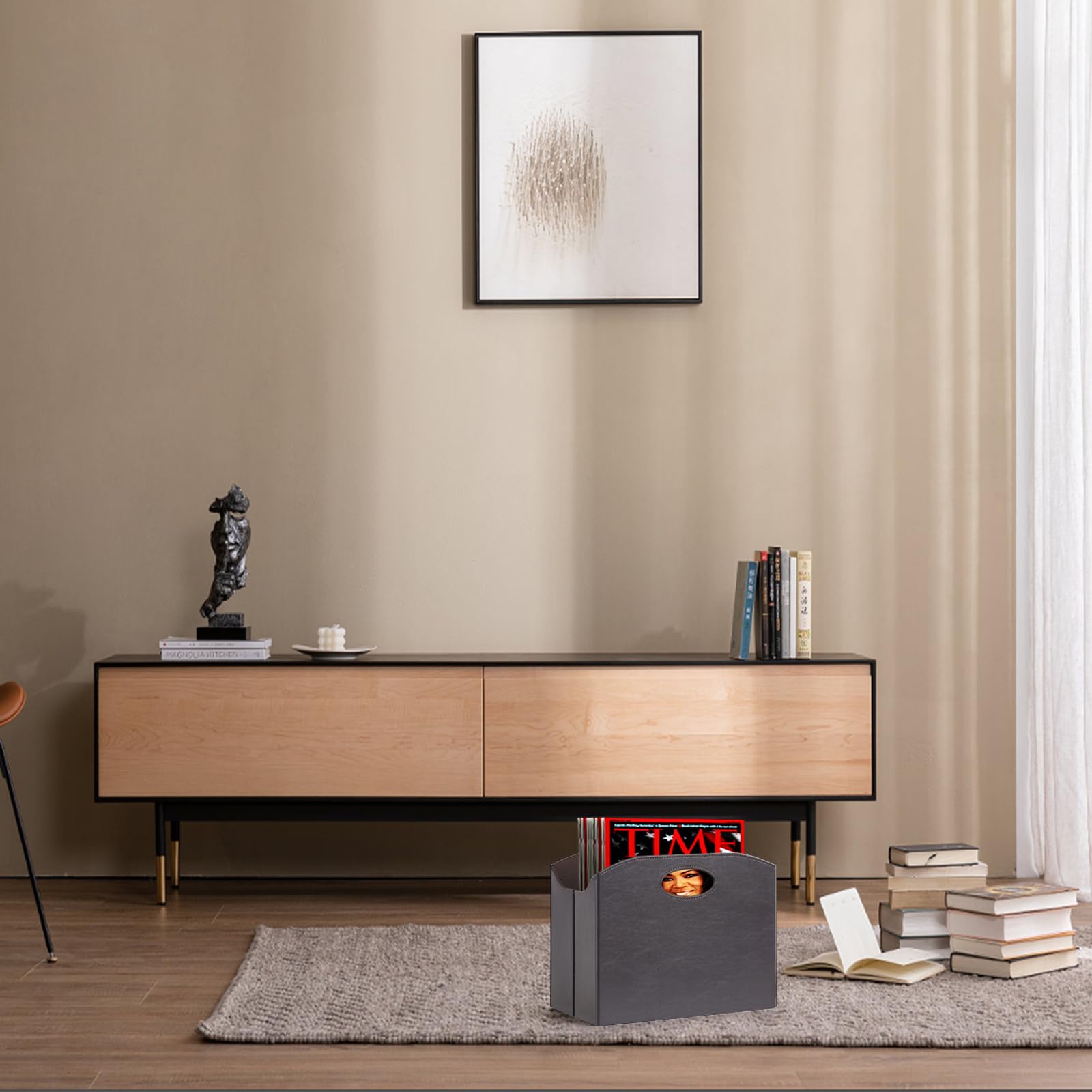 Zeitschriftenkorb Zeitschriftenständer Zeitschriftenhalter Minimalistisches Design: Unser Zeitschriftenkorb besteht aus recycelbarem Karton und sorgfältig ausgewähltem PU-Leder, zwei Griffe zum Tragen und einfachen Transport. Faltbar, um Platz zu sparen: Wenn Sie den Zeitschriftenkorb erhalten, ist er gefaltet. Alles, was Sie tun müssen, ist, die Stütztafel in den Magazinkorb zu legen, und der Korb steht aufrecht, bereit für den Einsatz. Bei Nichtgebrauch entfernen Sie einfach das interne Stützbrett und falten Sie den Korb flach zusammen, um Stauraum zu sparen. Leicht zu reinigen Einfach mit einem leicht angefeuchteten Waschlappen abwischen und trocknen lassen.