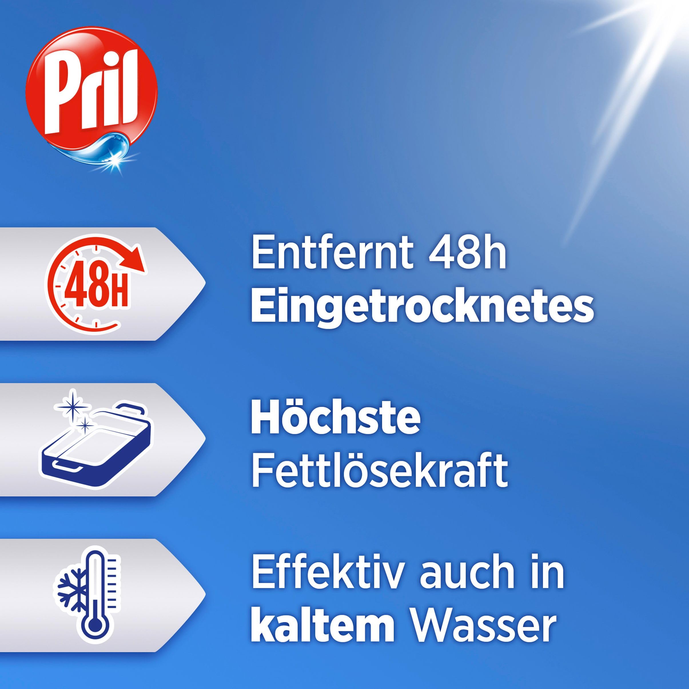 PRIL Kraft Gel Zitrone mit Kalt-Aktiv Formel – Spüle mit Kaltwasser, spare Energie Das PRIL Kraft Gel Zitrone Handspülmittel mit Kalt-Aktiv-Formel und höchster Fettlösekraft entfernt beim Geschirrspülen Fett, Stärke und eingetrocknete Speisereste wie von selbst – für strahlend sauberes Geschirr. Dank Kalt-Aktiv-Formel wirkt es auch bei niedrigen Temperaturen. Spüle mit kaltem Wasser und spare Energie. Der Flaschenkörper des Spülmittels besteht zu 100 % aus recyceltem Plastik, davon 50 % Plastik aus dem Gelben Sack und ist vollständig recycelbar. Die Produktvorteile im Detail: Höchste Fettlösekraft Selbstaktiv gegen Fett & Stärke Kaltaktive Formel Frischer Zitronenduft Effizient dank konzentrierter Formel Flaschenkörper aus 100 % recyceltem Plastik, davon 50 % aus dem Gelben Sack Flasche vollständig recyclebar Anwendung: Normaldosierung 3 ml, ca. 1 Teelöffel, auf 5 L Wasser. Eingetrocknete Stärkeanschmutzungen nach Bedarf einige Minuten einweichen bei einer Dosierung von 5 ml auf 1 L Wasser. Die Marke Pril Mit PRIL an Ihrer Seite beseitigen Sie mühelos starke Verschmutzungen und Geschirr-Berge nach einem netten Abend mit Freunden – denn es ist extra schnell und besonders wirksam gegen Fett, Stärke und Eingetrocknetes. Geniesst gemeinsam – wir kümmern uns um den Rest! Für ein sauberes Ergebnis, das sich sehen lassen kann.
