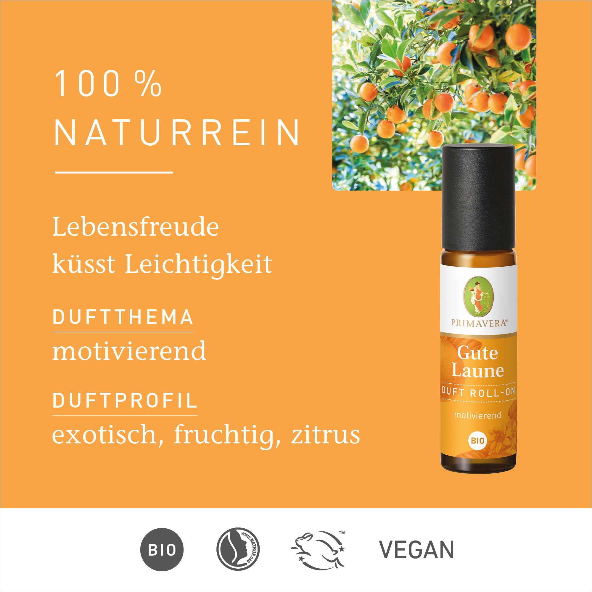 PRIMAVERA Duft Roll-On Gute Laune bio 10 ml - Orange, Limette und Zitrone - Aromaöl, Duftöl, Aromatherapie für unterwegs - motivierend - vegan