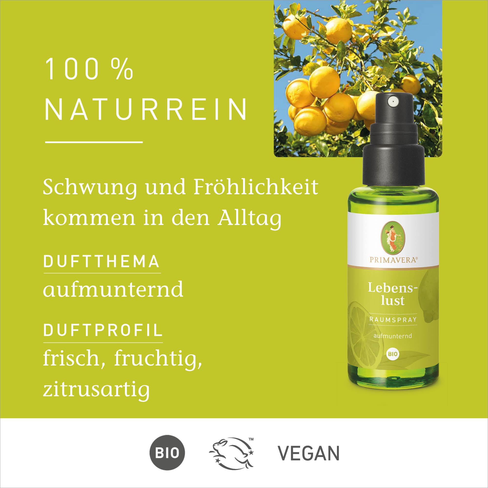 PRIMAVERA Raumspray Lebenslust bio 50 ml - Grapefruit, Spearmint und Limette - Aromadiffuser, Aromatherapie - aufmunternd - vegan
