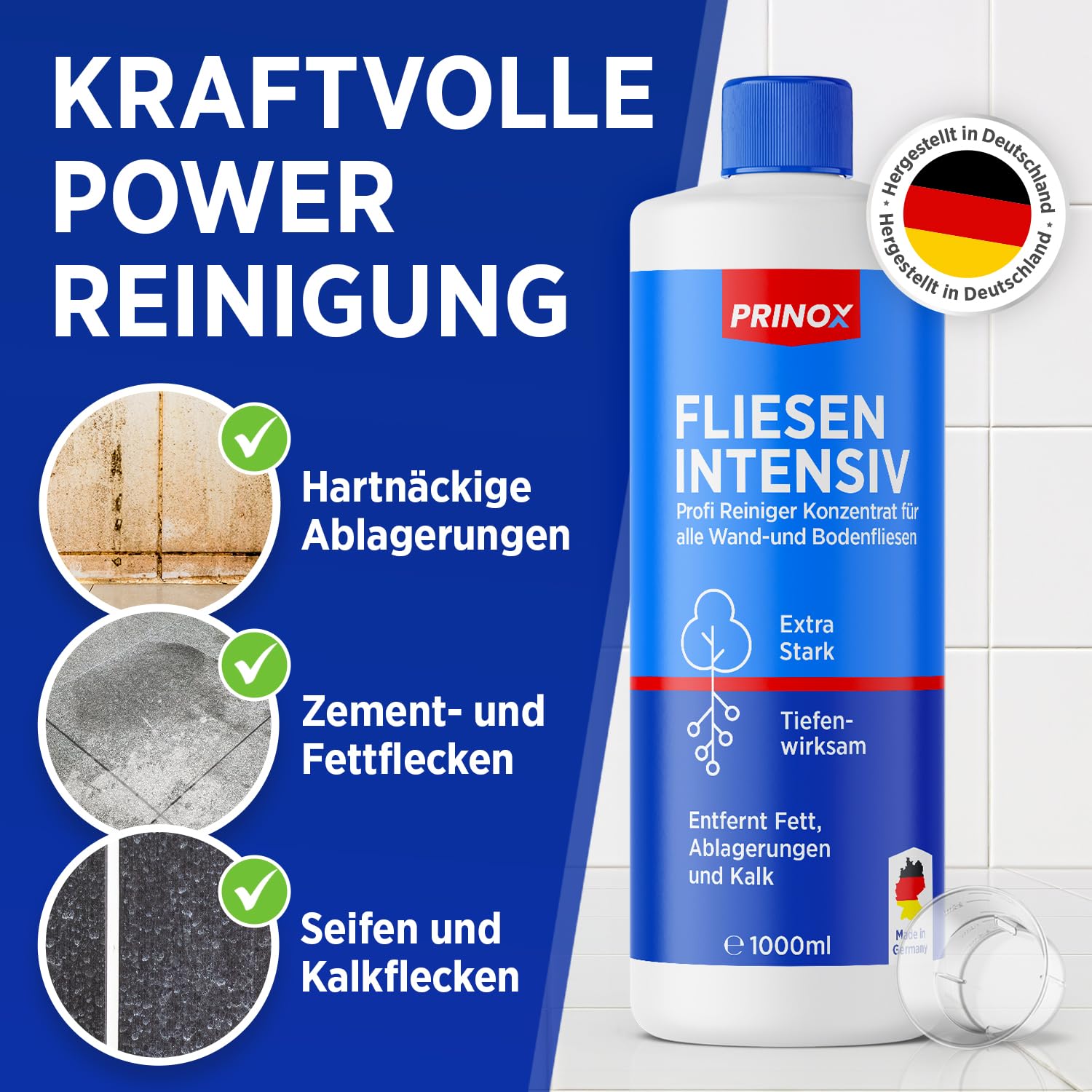 PRINOX 2x 1000ml Fliesenreiniger & Fugenreiniger Konzentrat EXTRA STARK - Reiniger zum Entfernen von hartnäckigen Verschmutzungen, Kalk oder Seifenresten im Bad