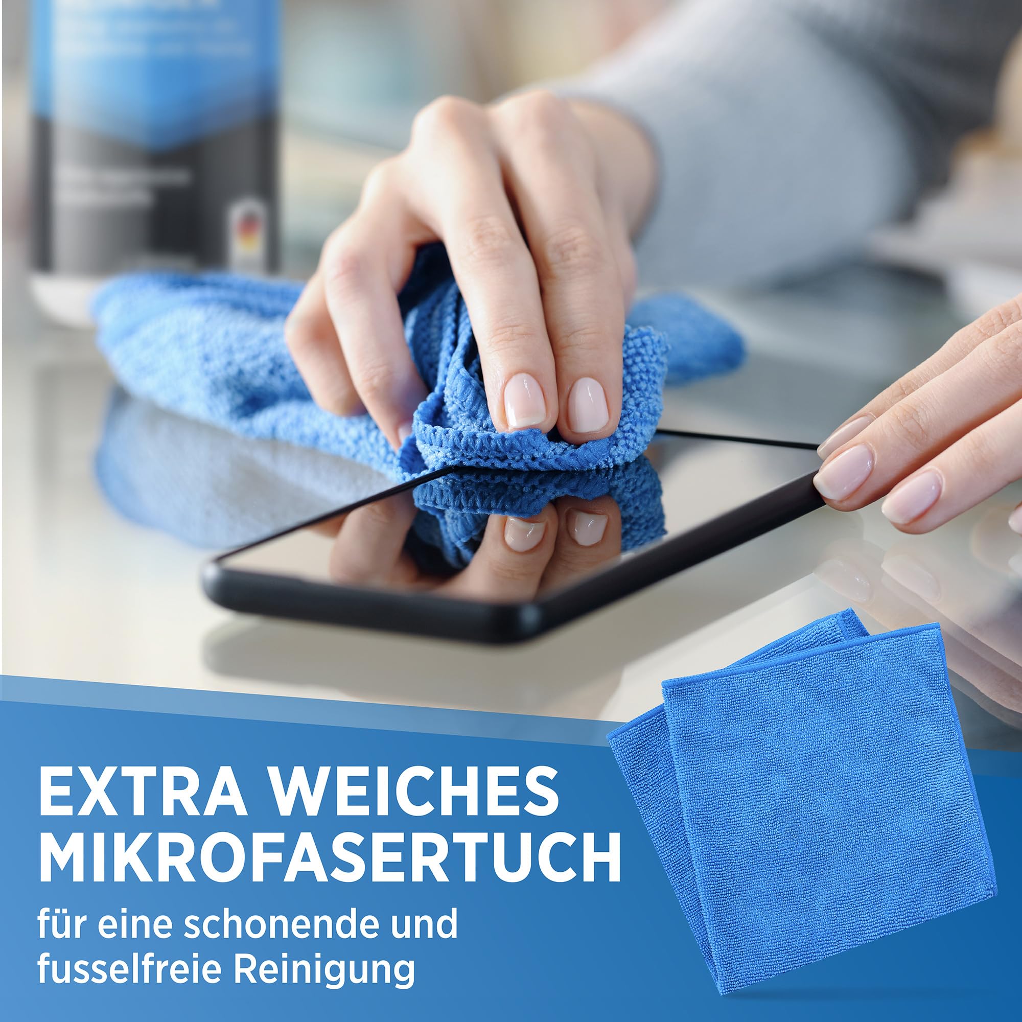 PRINOX 4x Bildschirmreiniger XXL Set [inkl. Mikrofasertuch und Pinsel] - Display Reiniger für Handy, Laptop und TV Displays (LCD, LED, OLED, QLED, TFT) gegen Fettflecken und Fingerabdrücke