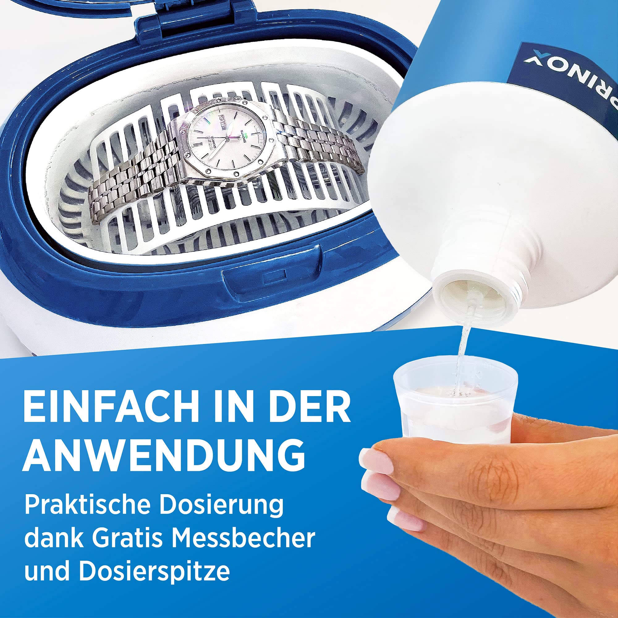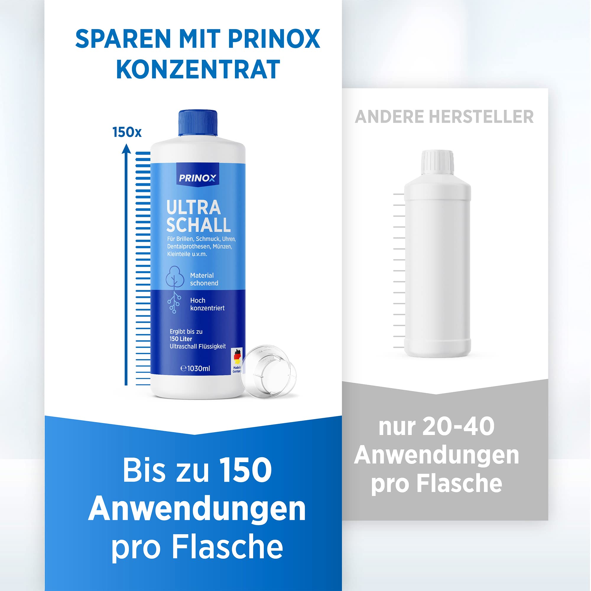 PRINOX Ultraschallreiniger Konzentrat 2x 1030ml inkl. 1x Mikrofasertuch I Extrem ergiebig für 700 Bäder je Flasche - Für Brille, Schmuck, Gebiss, Kleinteile - Ultraschallgeräte, Ultraschallbad