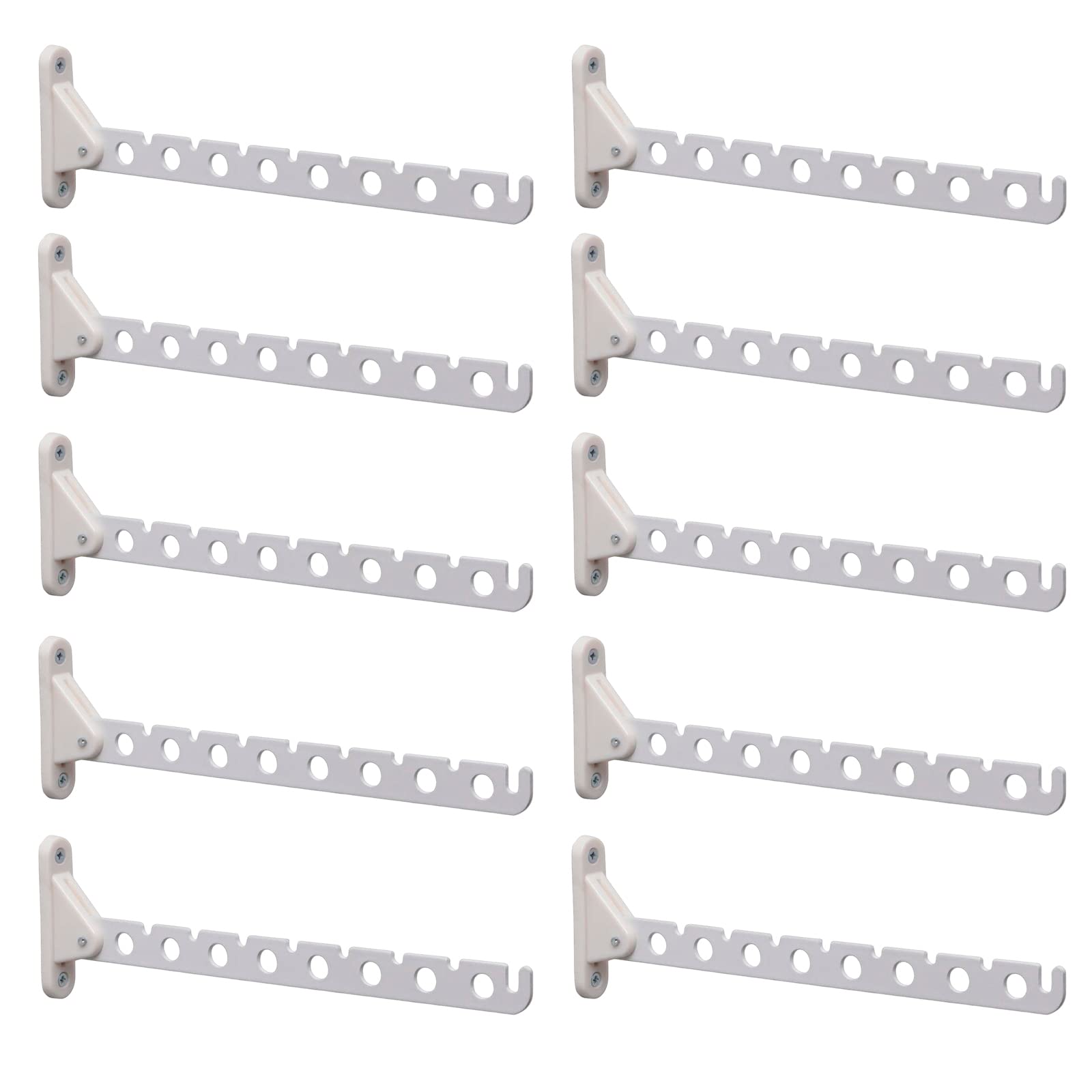 PRIOstahl Kleiderlüfter 310mm Weiss 10er Set Klappbar - Kleiderhaken Garderobenhaken Wandmontage 5kg Tragkraft Kleiderständer Abhängträger Stahl-Kunststoff Platzsparend