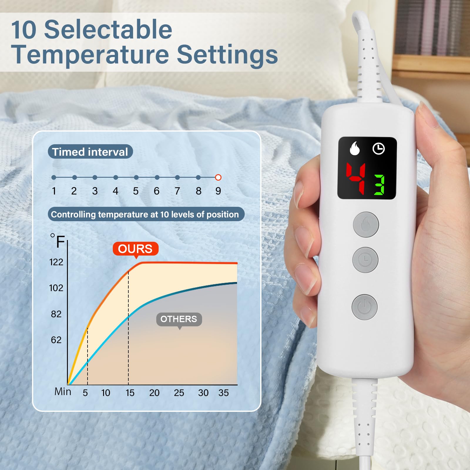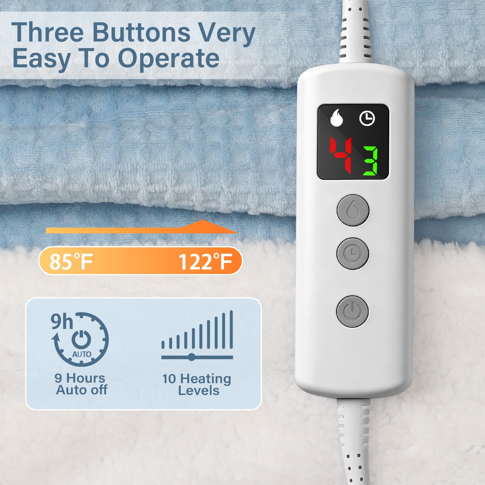 • 1-9H TIMER & 10 HEIZSTUFEN: Ausgestattet mit einer programmierbaren 9-Stunden-Timer-Funktion mit automatischer Abschaltfunktion ermöglicht das heated blanket dem wärme decke, nach einem gewünschten Zeitraum auszuschalten. Perfekt, wenn Sie einschlafen oder vergessen, das elektrische heizdecke abzustecken. Das elektrische decke verfügt über 10 einstellbare Heizstufen, die uneingeschränkte Temperatursteuerung für beispiellosen Komfort bietet – egal das Wetter