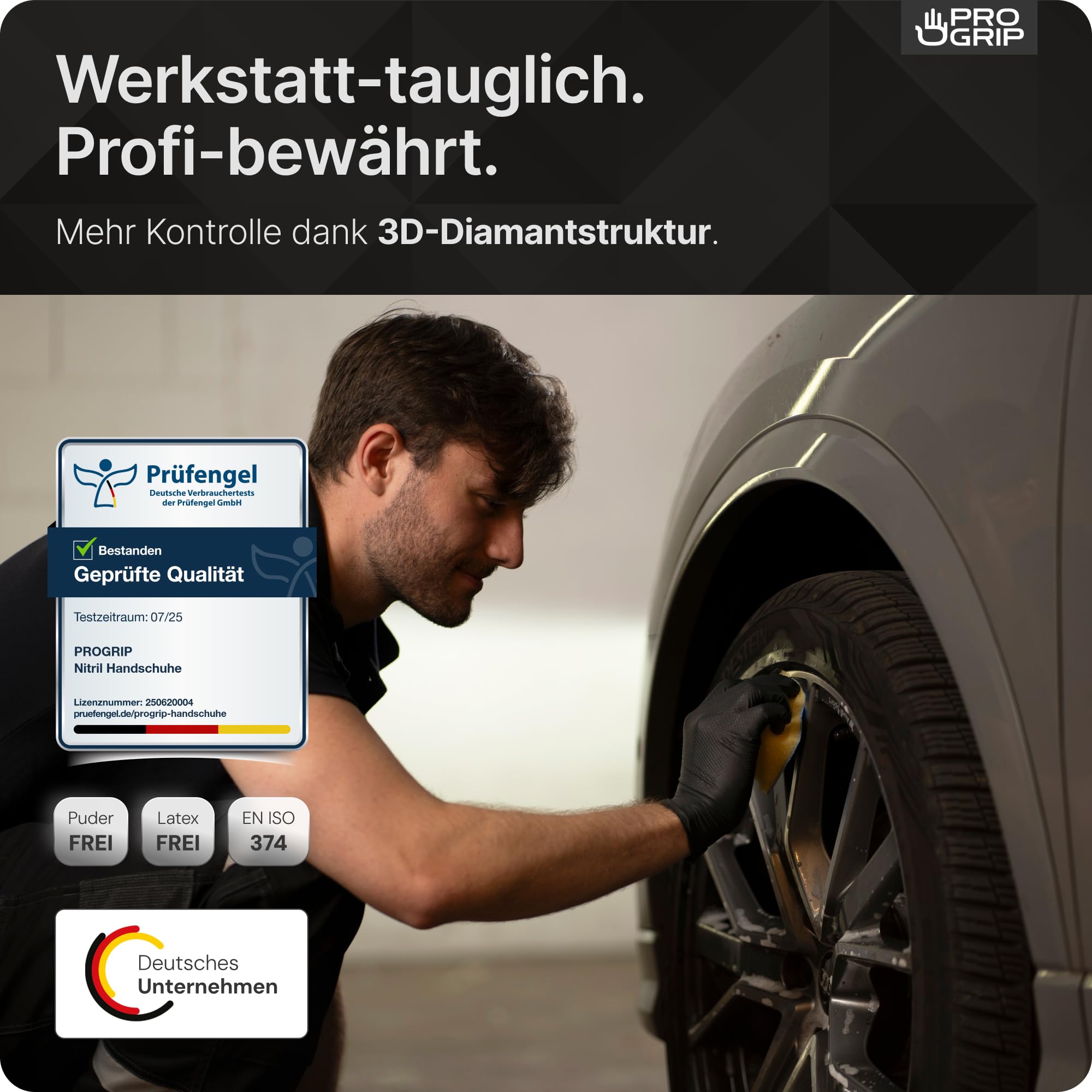 PROGRIP Einweghandschuhe Diamant Grip, Schwarz, Einmalhandschuhe Extra Stark, Nitrilhandschuhe Gr. L, 2x dicker, Handschuhe Einweg, Arbeitshandschuhe für Werkstatt & Montage, 50 Stk/Box