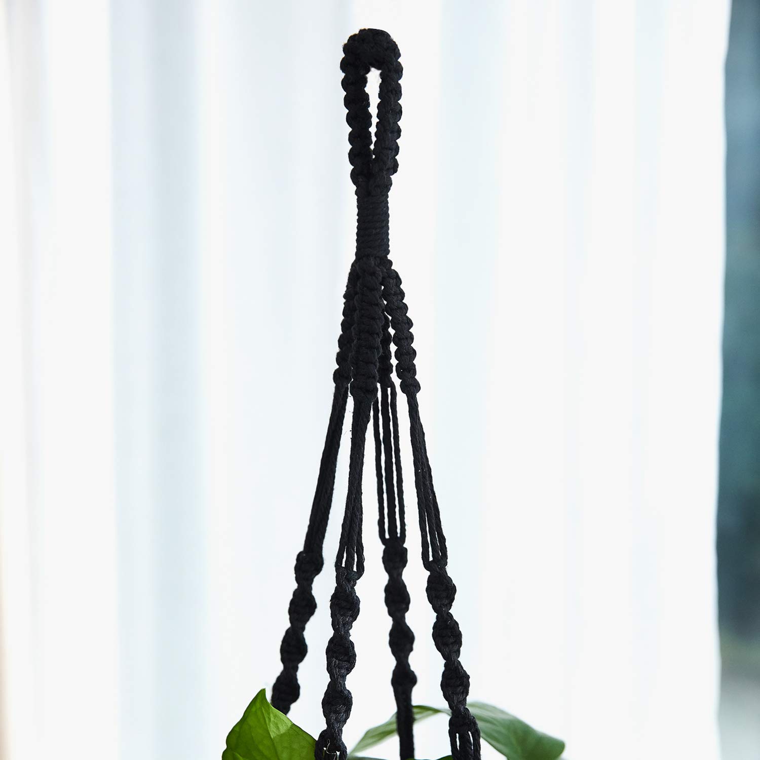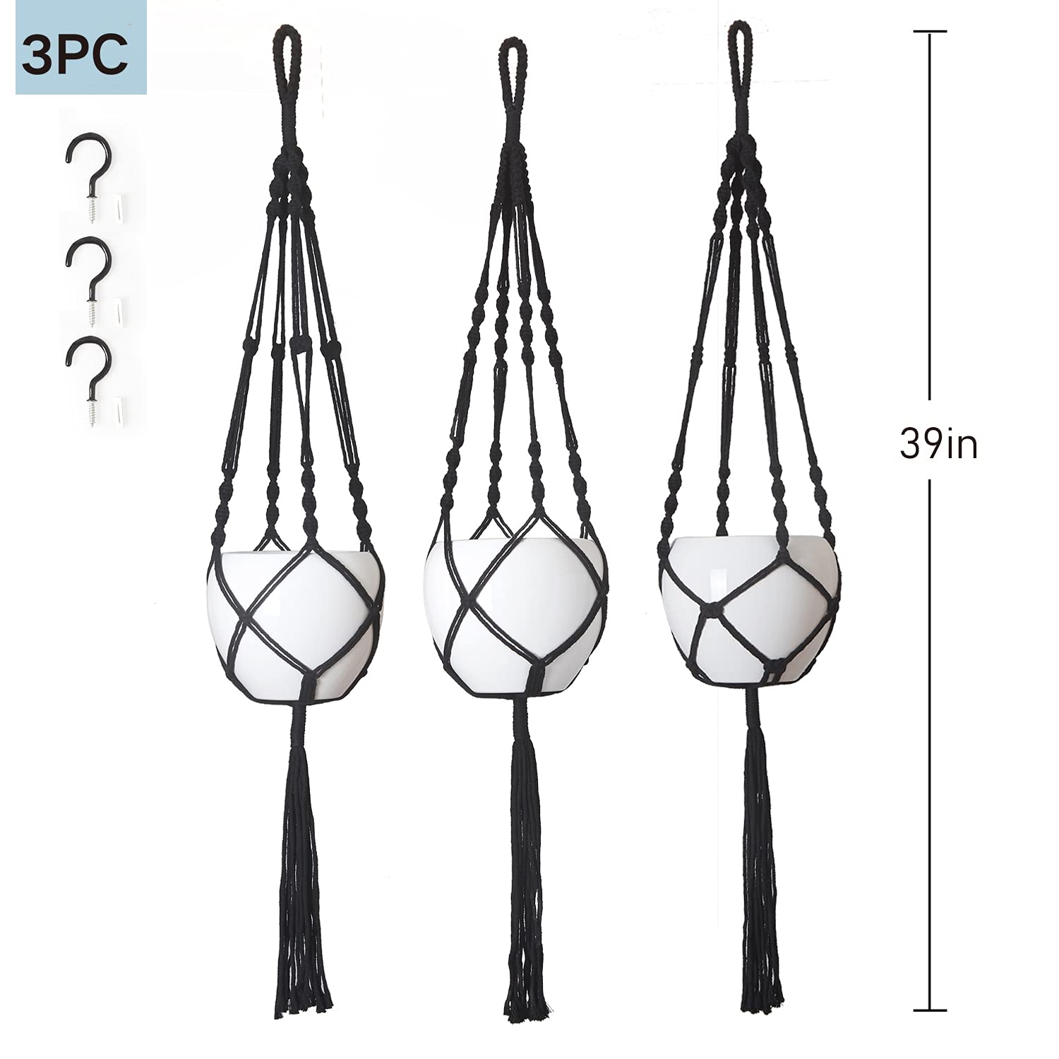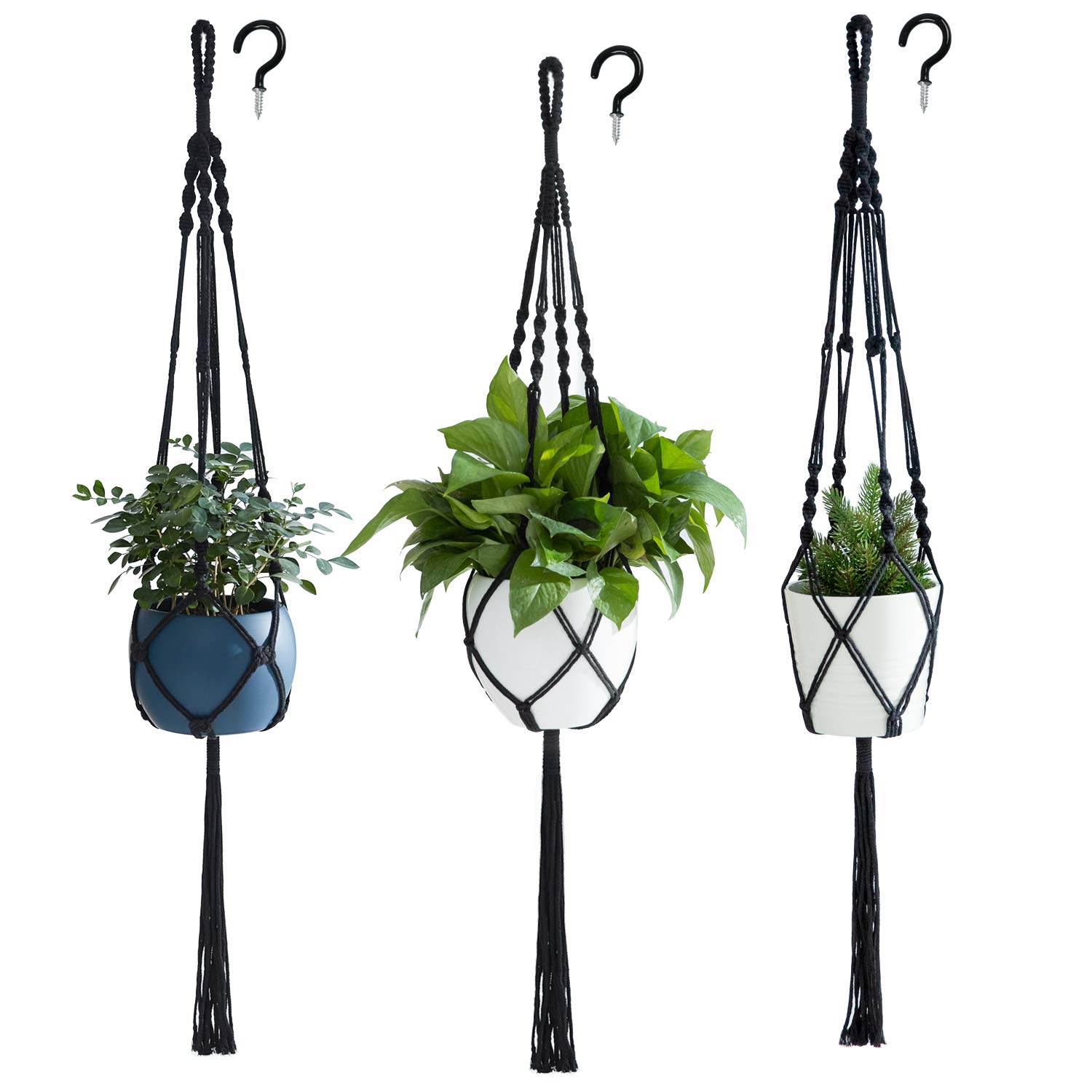PROTITOUS Makramee-Pflanzenaufhänger, 3 Stück, schwarz, für den Innenbereich, Blumentopfhalter, Baumwollseil mit Deckenhaken, gleiche Grösse, 4 Beine 99 cm