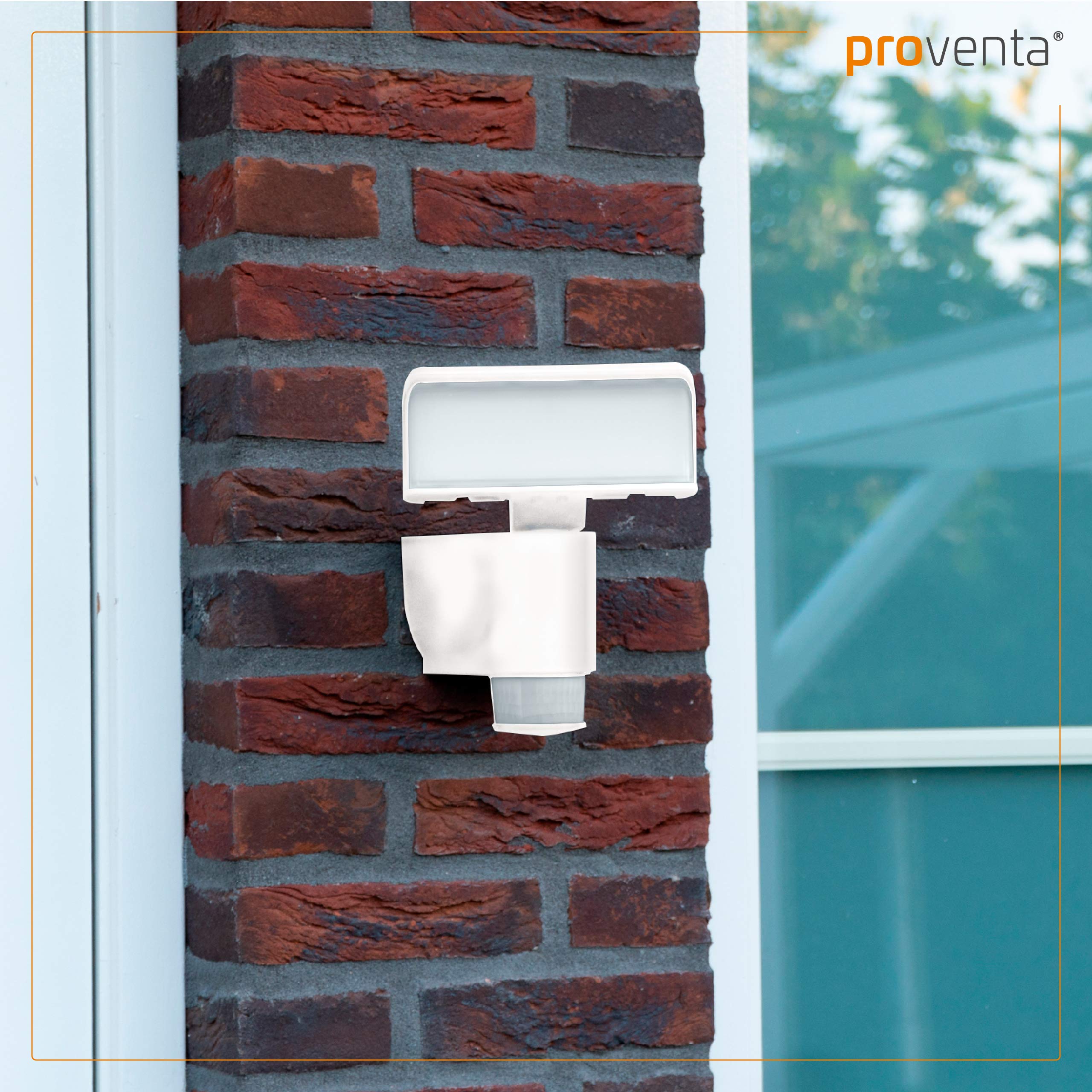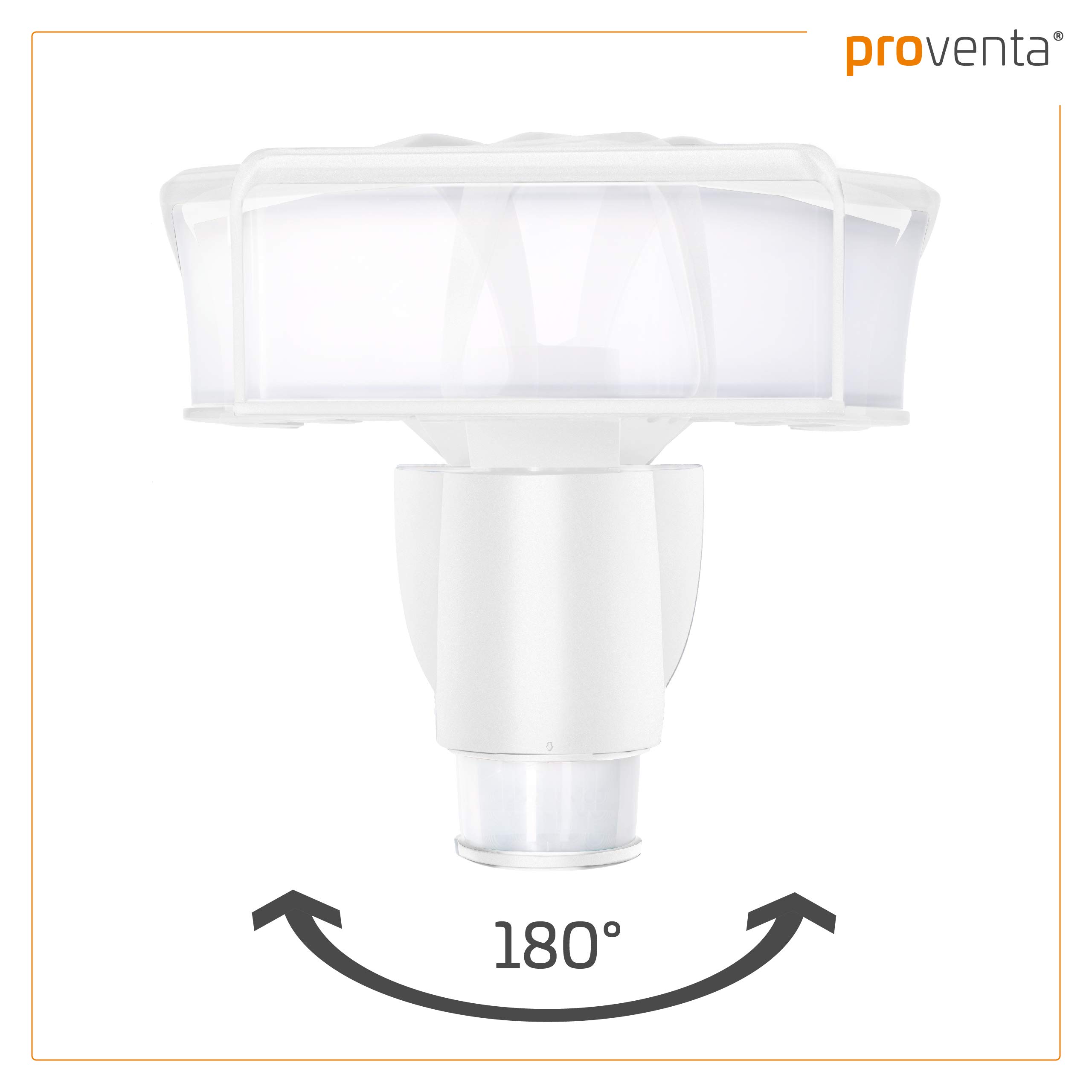 proventa LED-Strahler mit Bewegungsfunktion, das Licht folgt automatisch erfassten Bewegungen, 180° Schwenkbereich, 270° Bewegungsmelder, 18 Watt,1.100 Lumen, IP44, Gehäusefarbe weissSpannung: ca. AC-230 Volt- 50 Hz