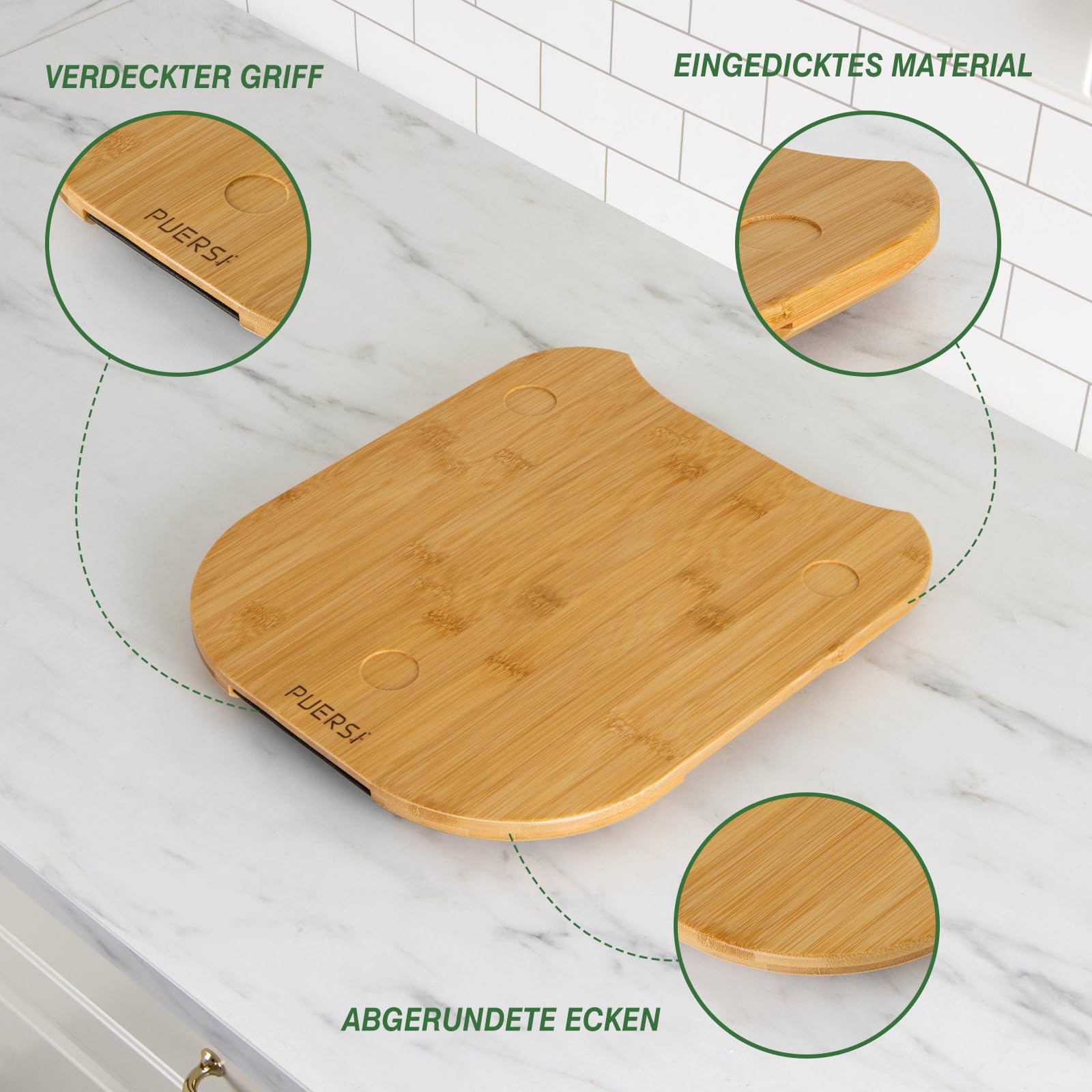 PUERSI Gleitbrett für Thermomix TM6/TM5, 2te Generation, Brett für Thermomix mit Rollen, Leicht Gleitendes Bambus Rollbrett/Slider - Bambus
