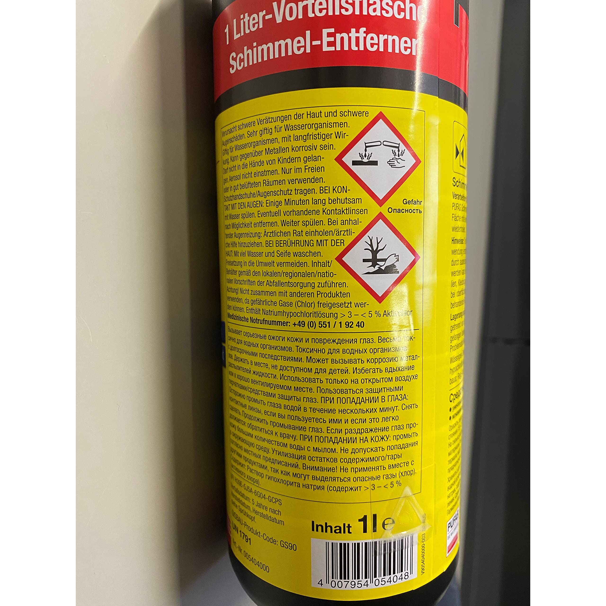 Pufas 5404000 Schimmelspray Antischimmelspray zum schnellen und gründlichen Entfernen von Schimmel, Grünbelägen, Stockflecken, Bakterien und Algen, 1L