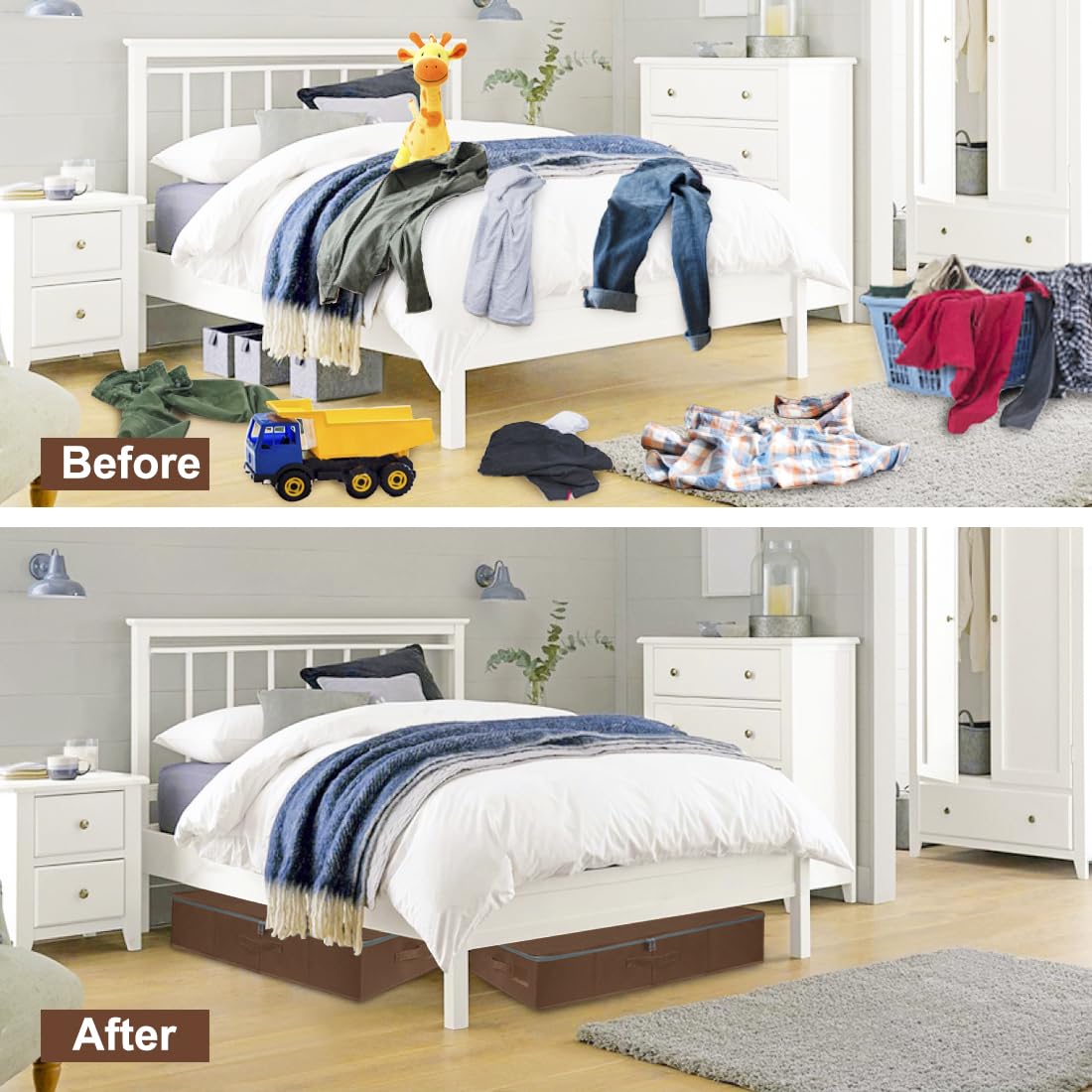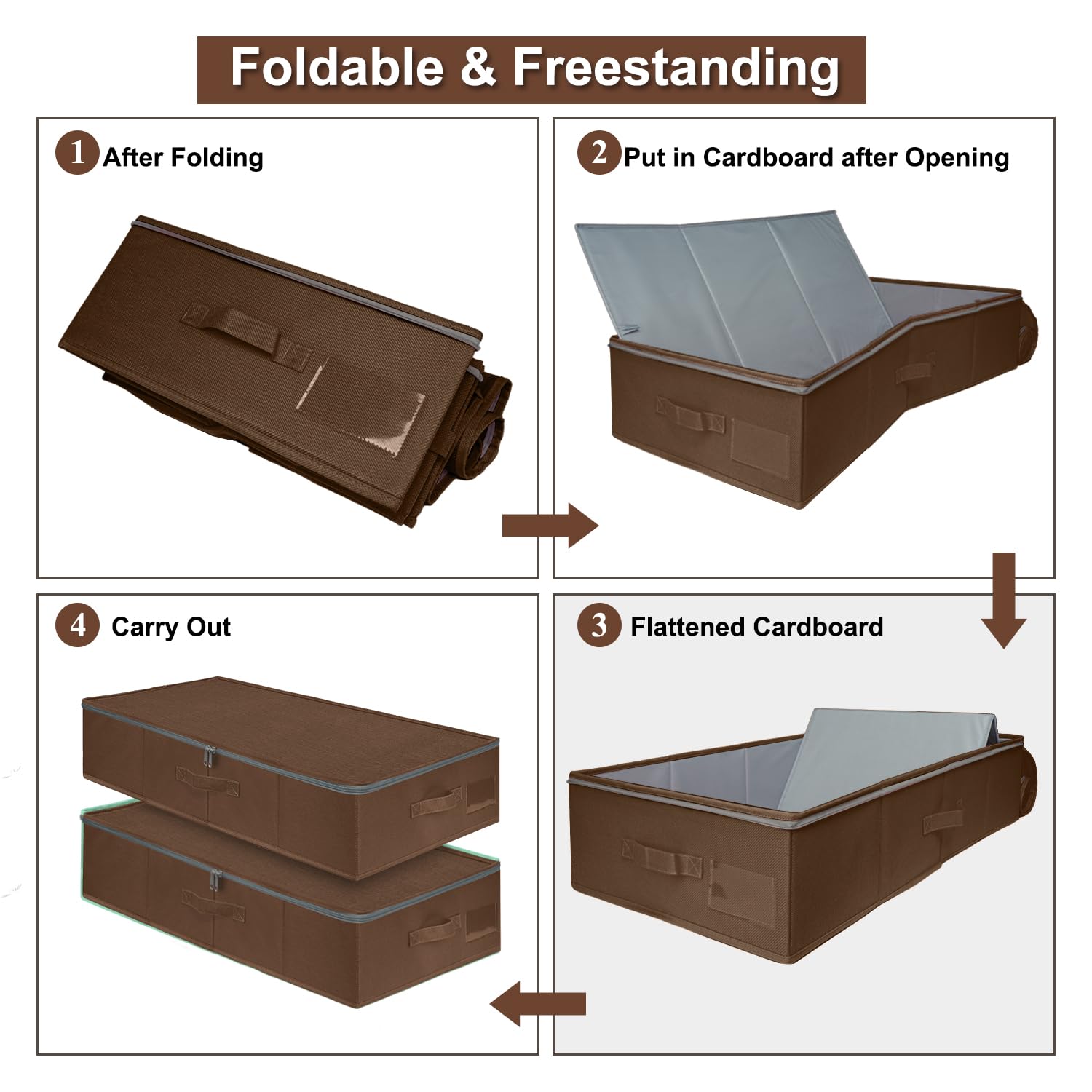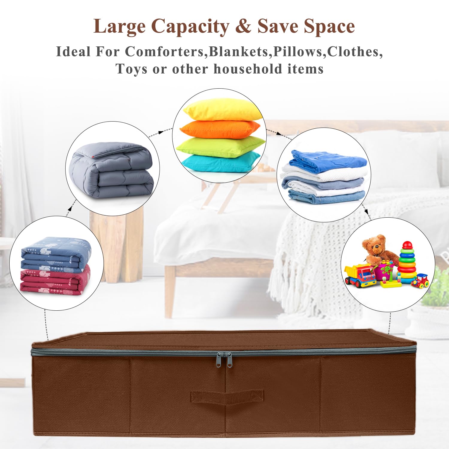 Aufbewahrungsbehälter unter dem Bett zum Organisieren passen perfekt unter Ihr Bett. Von Decken und Kissen über Kleidung und Schuhe ausserhalb der Saison bis hin zu Büchern. Diese Aufbewahrungsbeutel haben eine stabile Konstruktion und können alle Arten von Aufbewahrungsbedürfnissen bewältigen.
