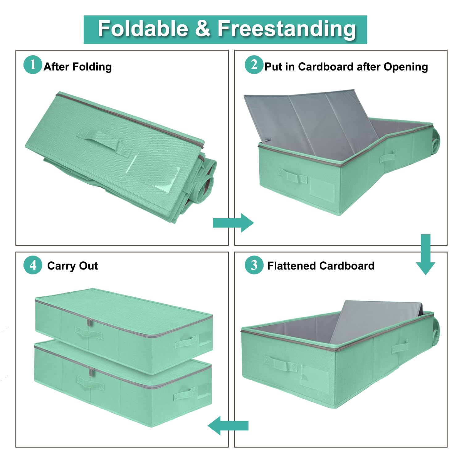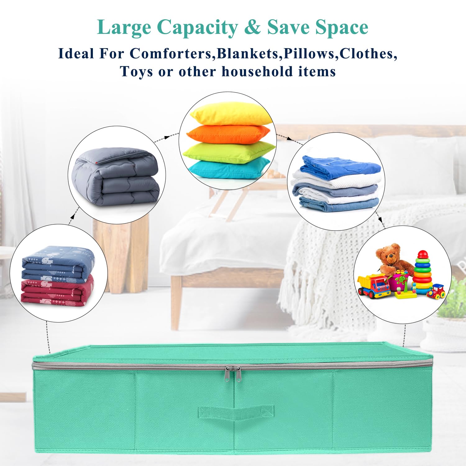 punemi Unterbett-Aufbewahrungsbehälter, 17 cm hoch, Unterbettkommode mit stabilen Seitenwänden/Boden, Unterbett-Aufbewahrungsbehälter, 2 dünne Behälter mit Griffen, Blaugrün, 2 Stück