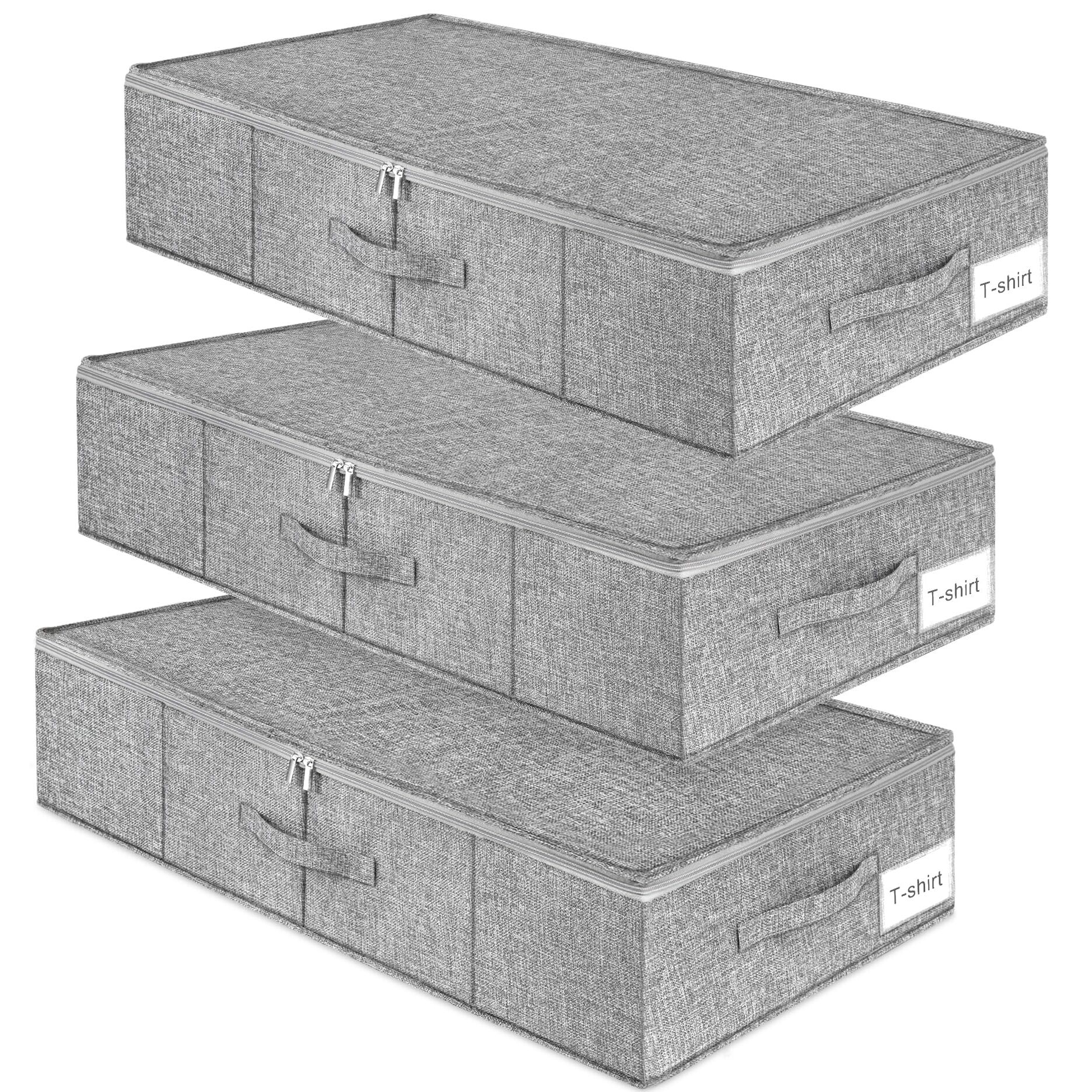 punemi Unterbettaufbewahrung, 3 Stück, Unterbett-Aufbewahrungsbehälter mit Deckel, faltbar, stabil, Kleideraufbewahrung, Schublade, Organizer mit 3 Griffen, ultradicker Stoff, für Decken, Schuhe, Grau