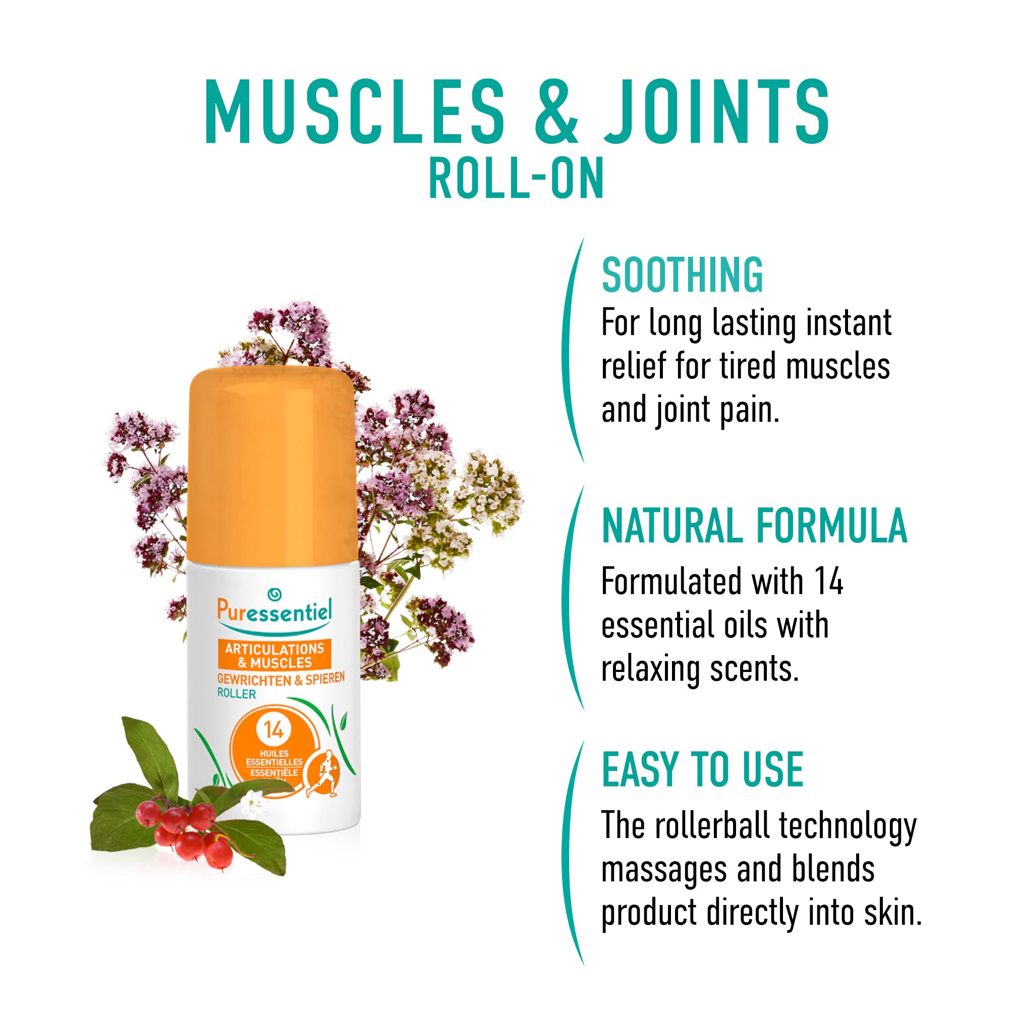 Botanisch und Biochemisch Definierte Ätherische Öle - BBDÄÖ. 100 Prozent rein und natürlich. Verträglichkeit getestet - Ohne Farbstoffe - Ohne Konservierungsmittel - Ohne synthetische Duftstoffe - Ohne Mineralöle. Dieser Gelenk-Roll-on ist für Sportler (vor und nach dem Training) sowie für Personen, die unter akuten oder chronischen Muskel- oder Gelenkschmerzen leiden (Nackenversteifung, Rückenschmerzen, Verspannungen, Muskelschmerzen, Gelenksteifigkeit usw.), geeignet. Die Verbindung von Massageroller und 14 ätherischen Ölen (Cajeput, Römische Kamille, Gewürznelke, Eukalyptus Globuli, Wintergrün, Wacholder, Lavandin Grosso, Majoran, Pfefferminze, Niaouli, Muskatnuss, Waldkiefer, Rosmarin Cineol und Terpentin) bietet Ihnen eine natürliche und wirksame Lösung zur Schmerzbekämpfung. Die Wirksamkeit wurde durch eine klinische Studie* unter ärztlicher und physiotherapeutischer Aufsicht nachgewiesen: Verringerung der Schmerzintensität, Muskelentspannung, sofortige Linderung, dauerhaft beruhigende Wirkung, Verringerung von Verspannungen und Kontraktionen, Verbesserung des Wohlbefindens, der Mobilität, der Gelenkigkeit und der körperlichen Aktivität, einschliesslich alltäglicher Aktivitäten (Autofahren, Anziehen, Waschen, Taschen tragen ...). *Klinische Wirksamkeits- und Zufriedenheitsstudie mit 43 Personen über 4 Wochen. ANWENDUNG Roll-on gut schütteln, dann 3-mal täglich auf Gelenke oder schmerzende Muskeln (Rücken, Nacken, Schultern, Ellenbogen, Handgelenke, Hände, Hüfte, Knie, Oberschenkel, Waden, Knöchel, Füsse usw.) auftragen. Der Massageroller ist ideal zur Selbstmassage schmerzender Bereiche, indem er die Muskelentspannung fördert. Es kann auch eine grössere Menge des Produkts verwendet werden. Sie können die Behandlung mit einer manuellen Massage abschliessen. Anschliessend Hände waschen. VORSICHTSMAssNAHMEN Nicht geeignet für Kinder unter 7 Jahren, sowie schwangere und stillende Frauen, Personen mit epileptischen oder Krampfanfällen und alle, die auf Salicylate allergisch reagieren. Für Personen in medizinischer Behandlung und bei Kindern ist ein Arzt oder ein Apotheker zu Rate zu ziehen. Kontakt mit Augen, Schleimhäuten oder verletzter Haut vermeiden. Im Fall von Augenkontakt mit Wasser und Pflanzenöl ausspülen. Nicht bei Personen mit Allergien anwenden, ohne vorher einen Hauttest durchgeführt zu haben. Ausserhalb der Reichweite von Kindern aufbewahren. Äussere Anwendung.