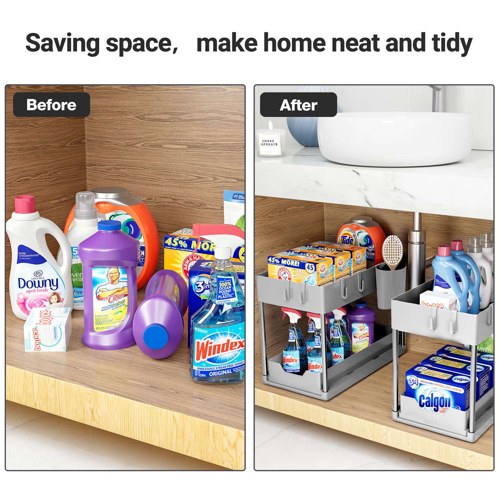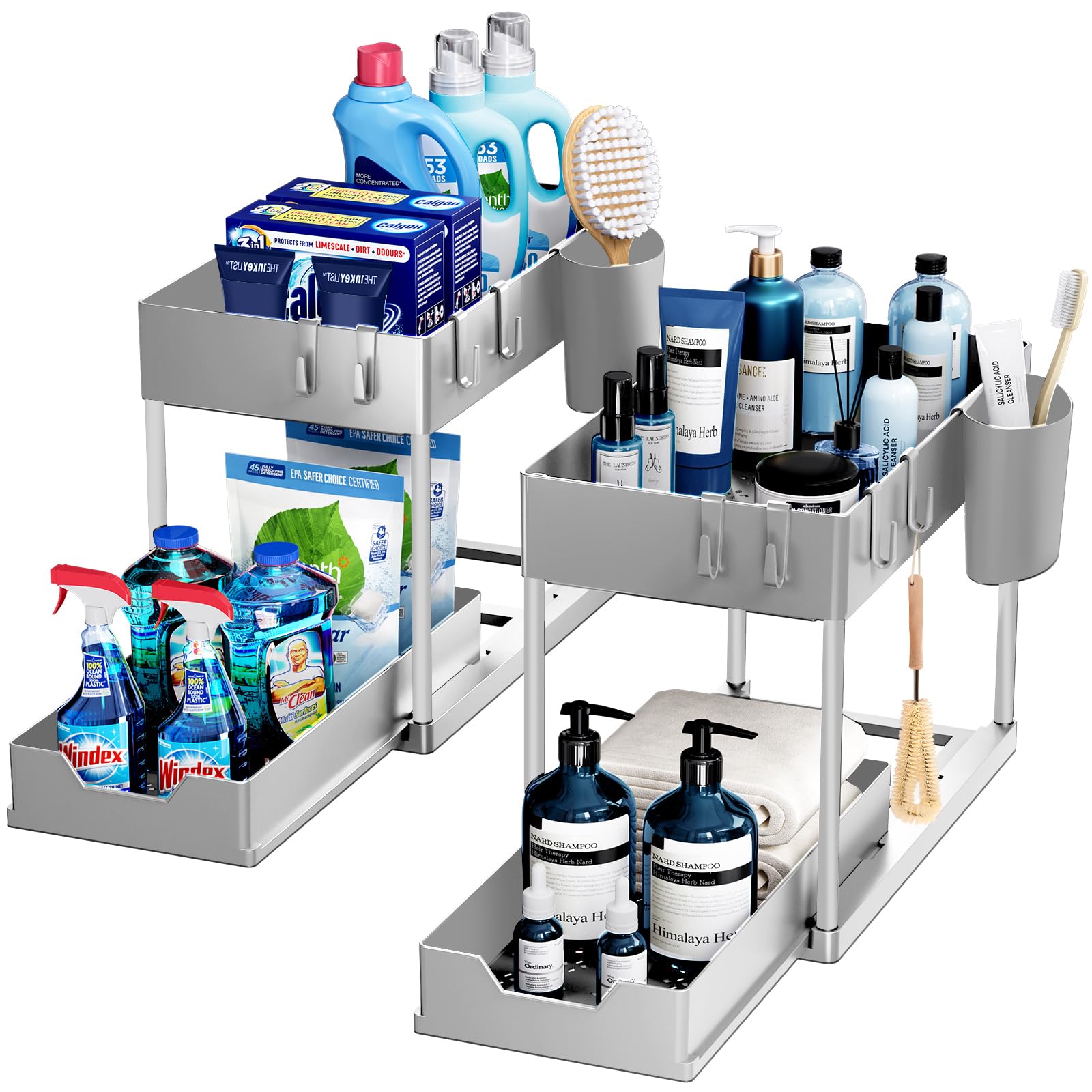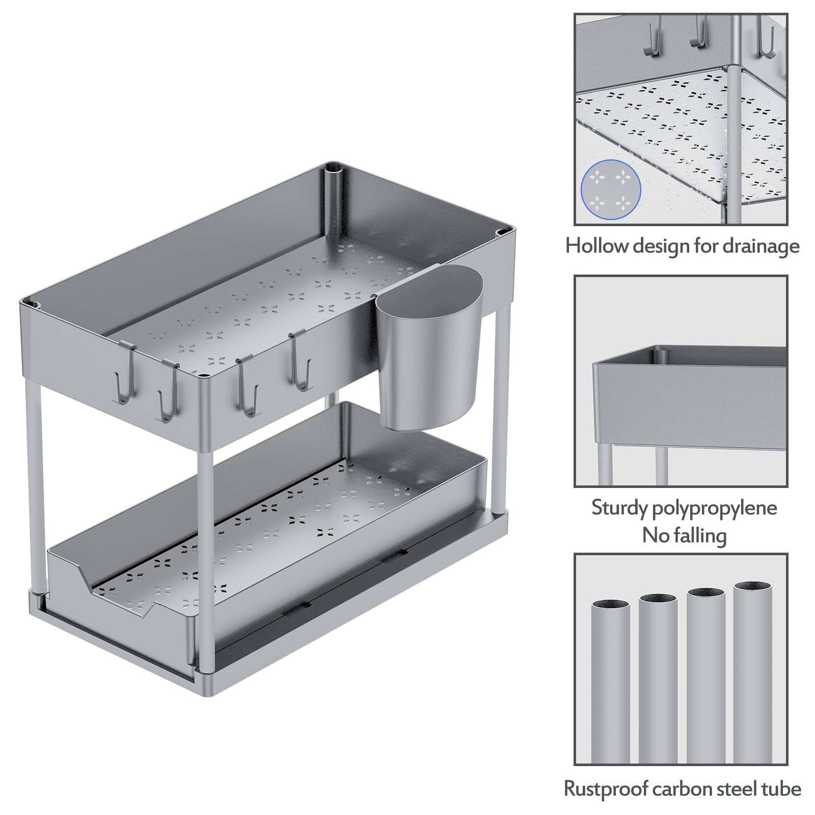 Puricon Organizer unter der Küchenspüle, 2-stöckiger Organizer unter der Spüle, Mehrzweck-Regal unter der Spüle für Küche und Bad (Grau, 2)