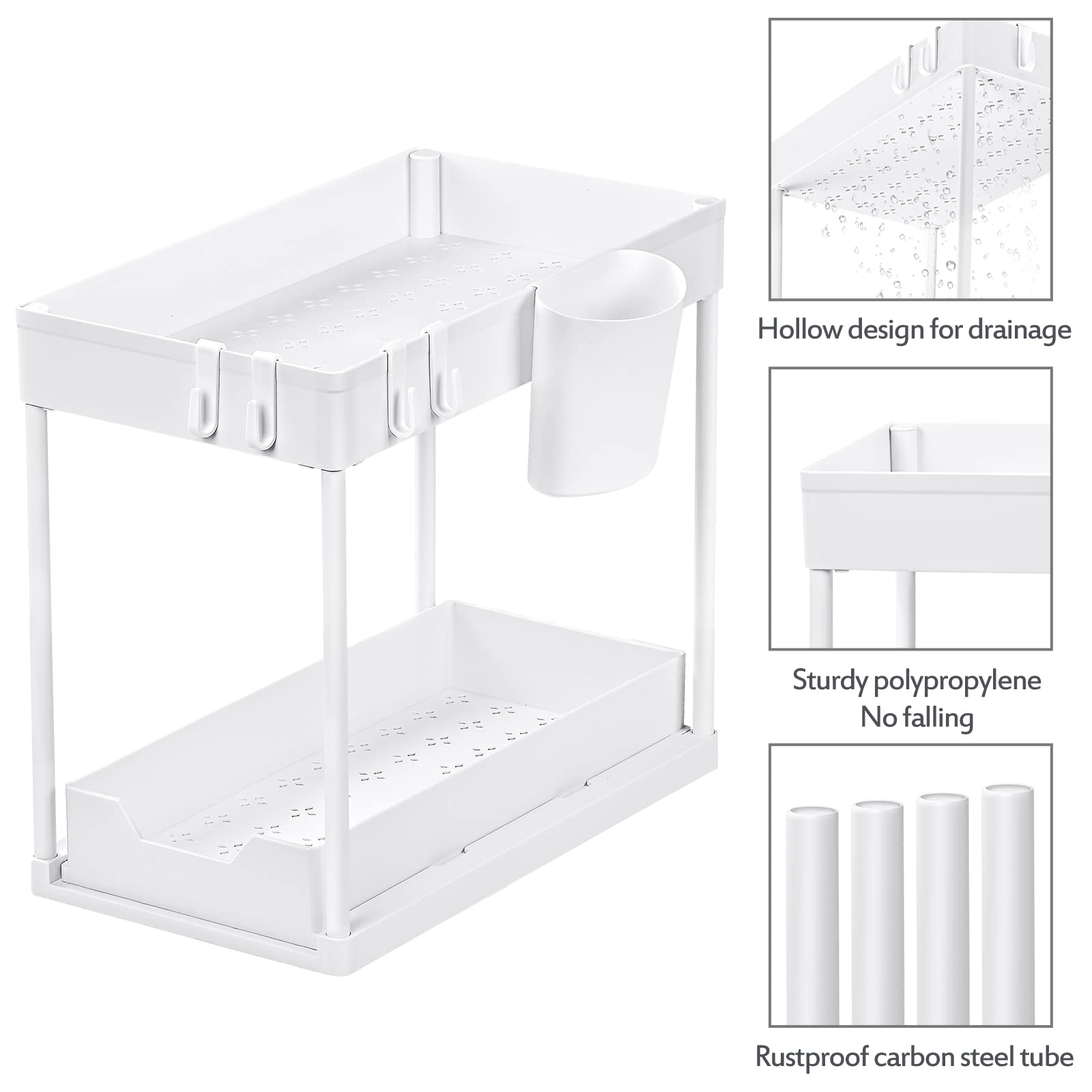 Puricon Unter Waschbecken Regal, 2 Etagen Standregal Küche Arbeitsplatte Regal Organizer, Mehrfunktional Küchenregal Gewürzregal Unterschrankregal Spülschrankregal -Weiss