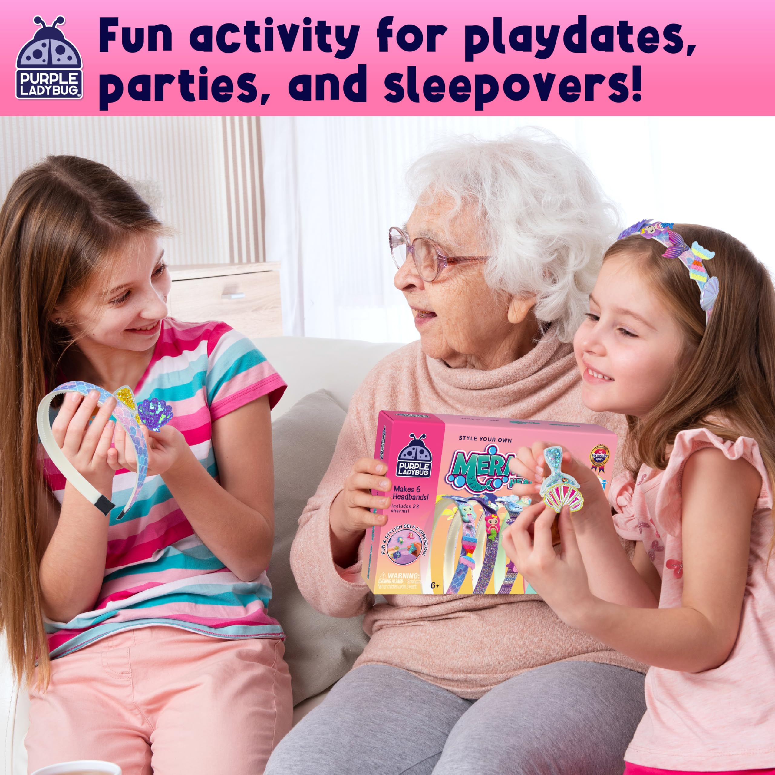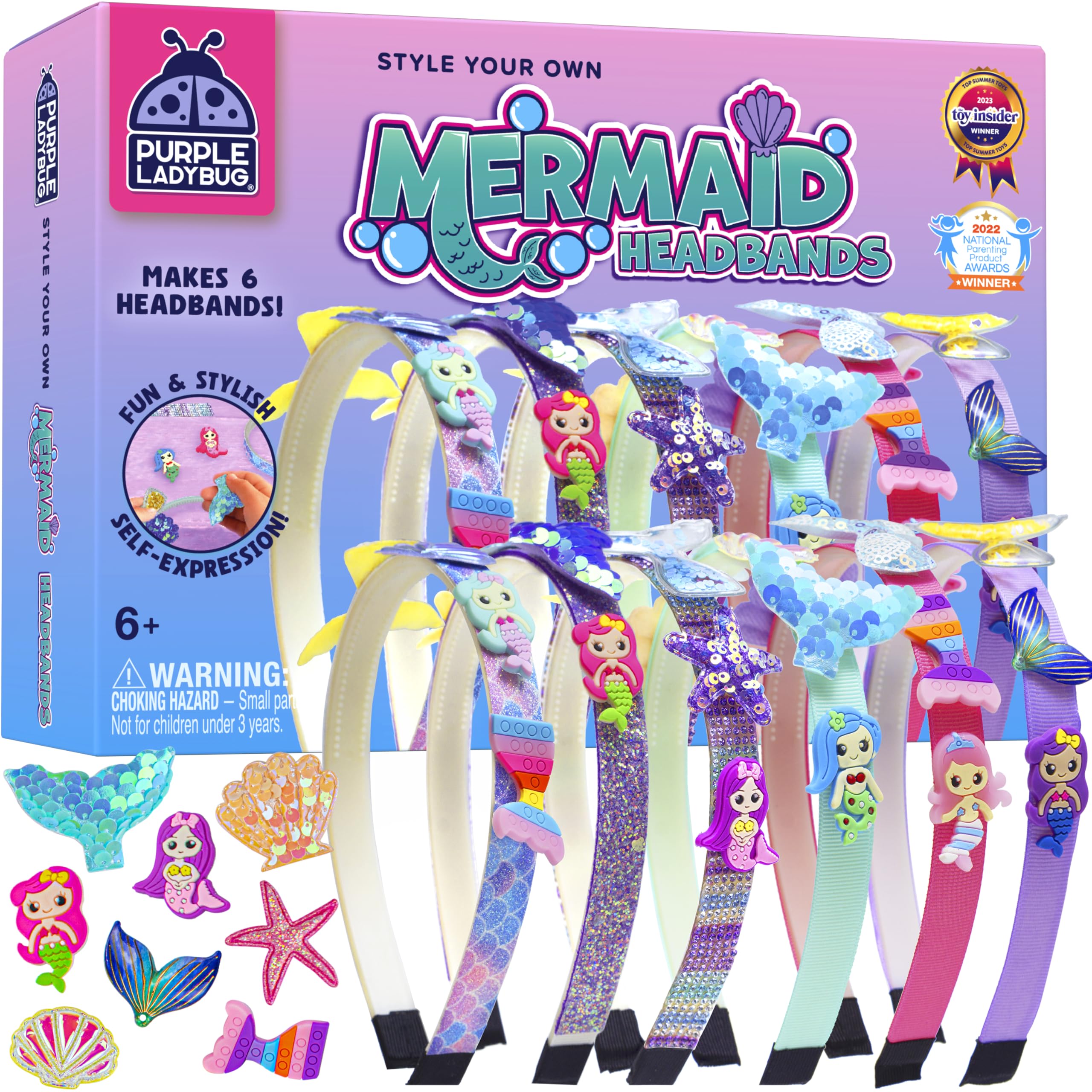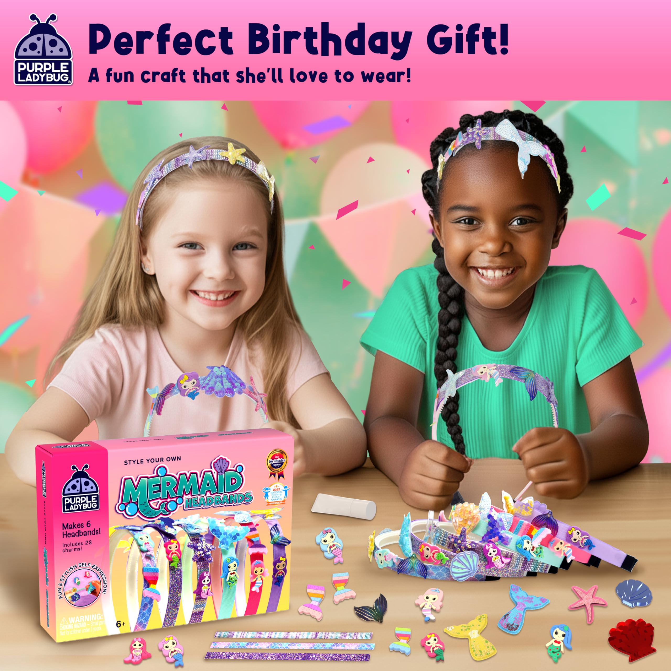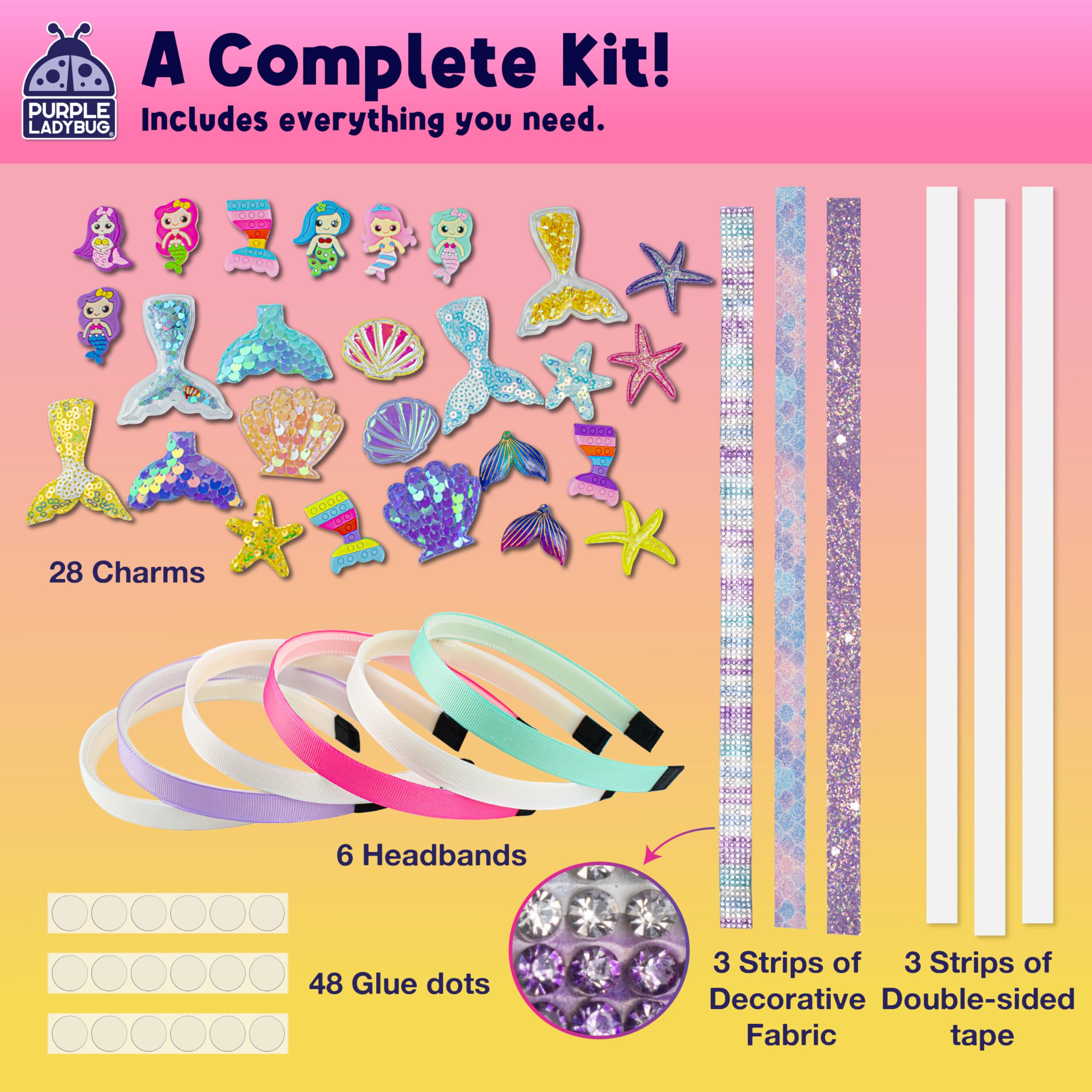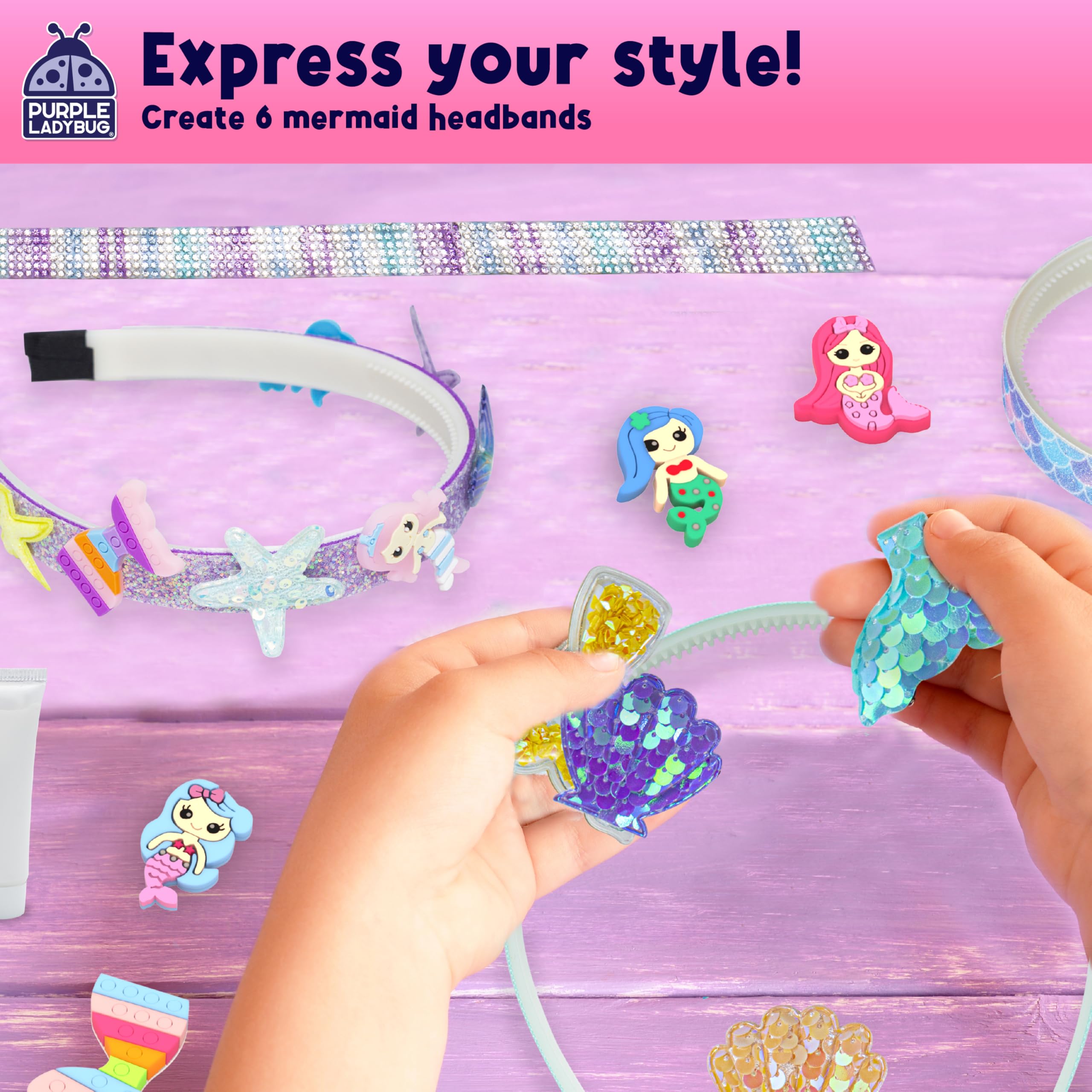 PURPLE LADYBUG Meerjungfrau Haarreifen Selber Machen - Bastelset Kinder ab 6 Jahre - Coole Schulanfang Mädchen Geschenk 7 8 9 10 11 12 Jahre - Kreatives Haarband Basteln Mädchen 8 Jahre