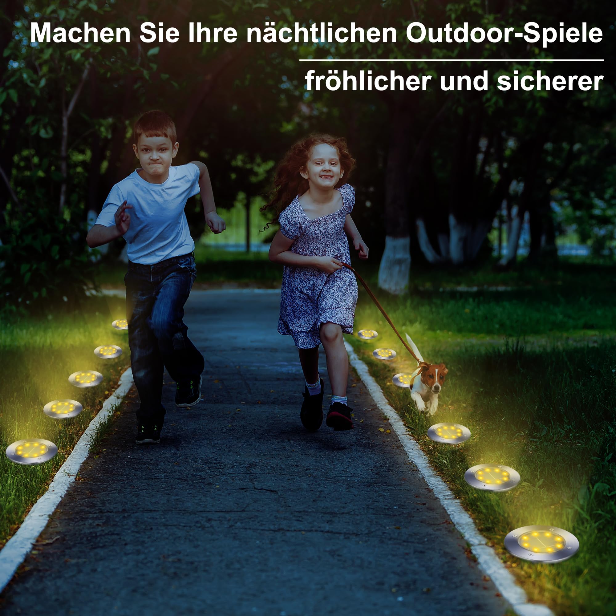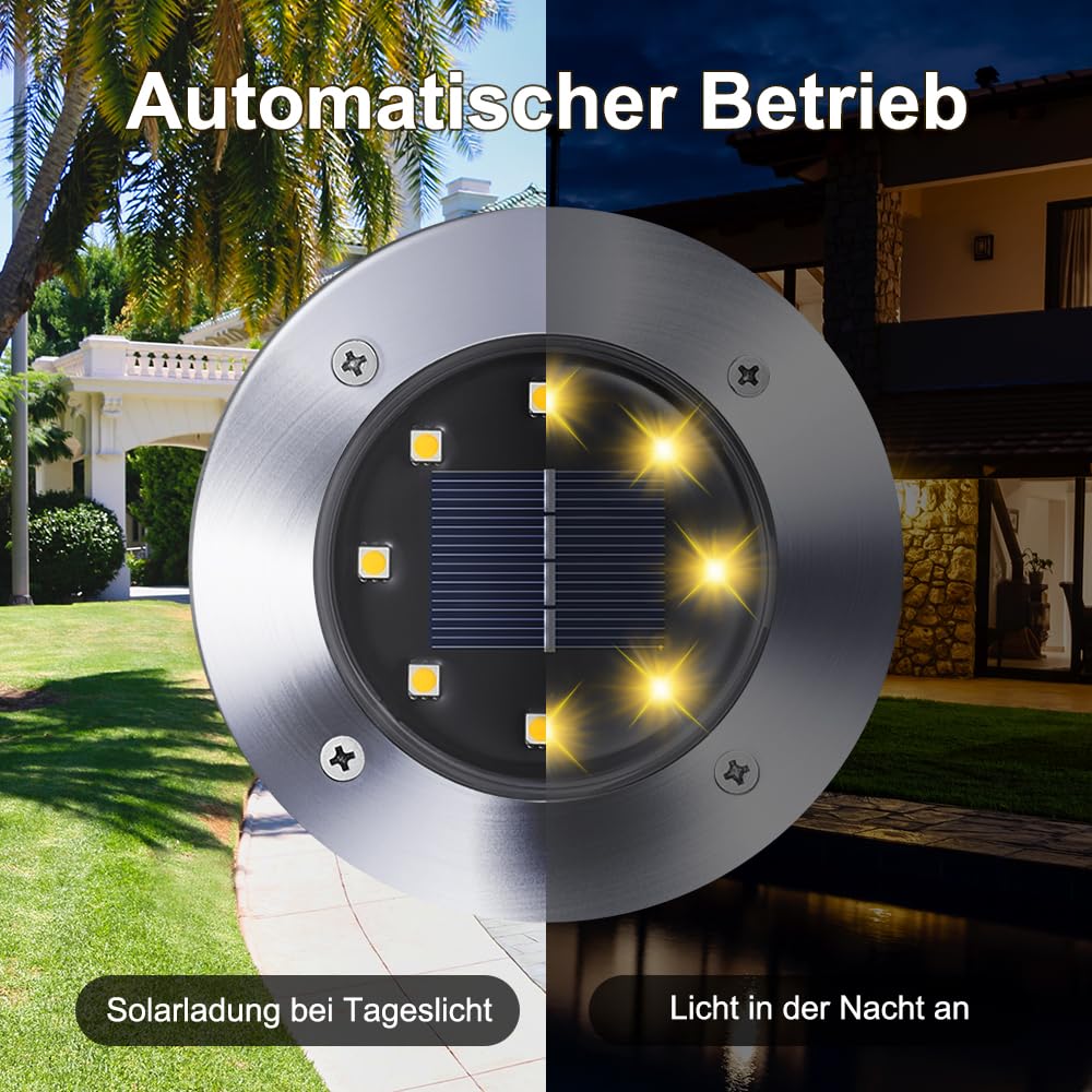 Qedertek Solar Bodenleuchten Aussen Garten - 8 Stück 8 LED Solarleuchten Aussenleuchte Warmweiss, Led Solar Gartenleuchten Wasserdicht Solarlampen für Garten, Rasen, Gehweg, Patio, Auffahrt