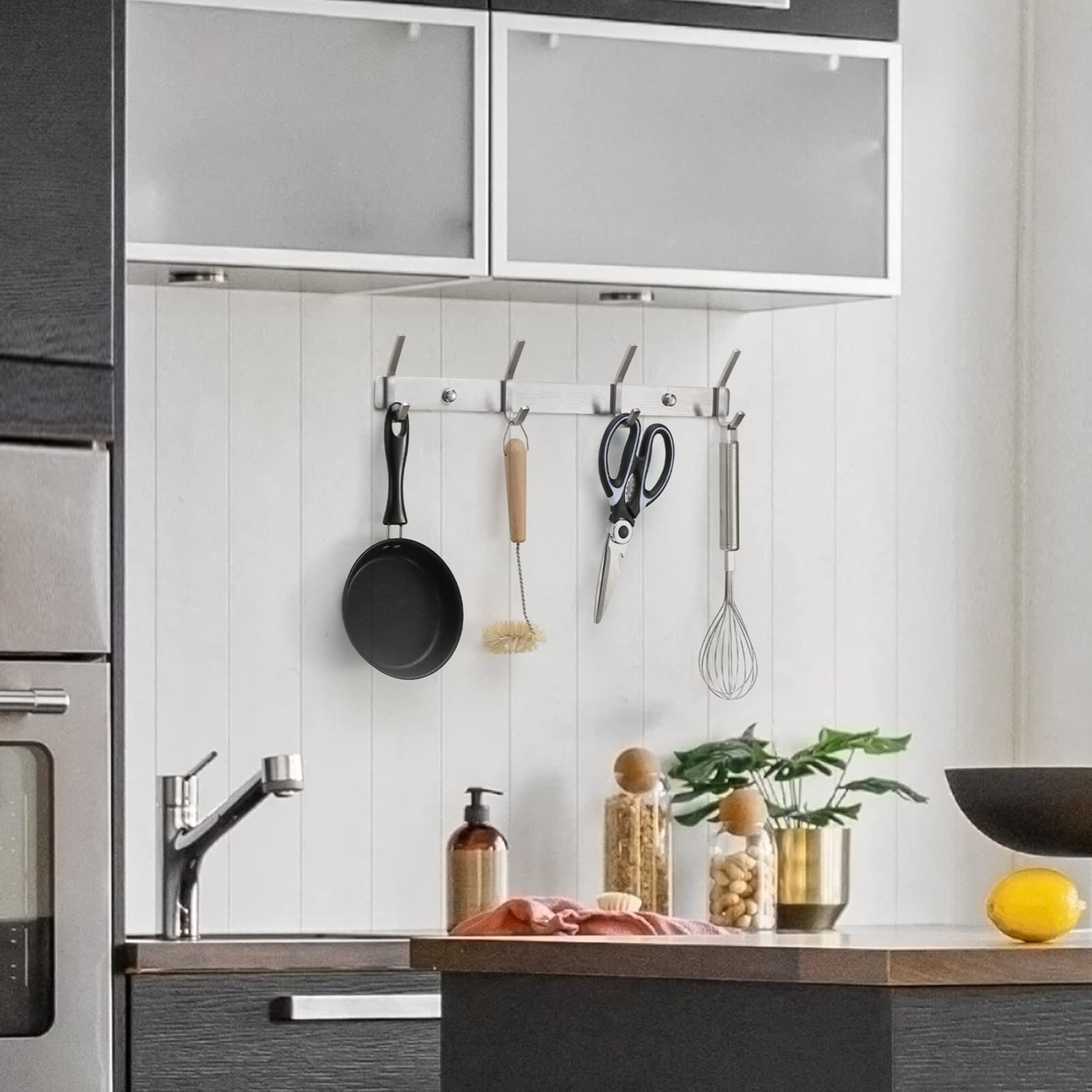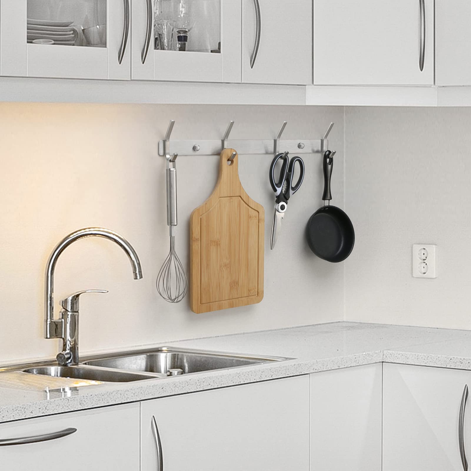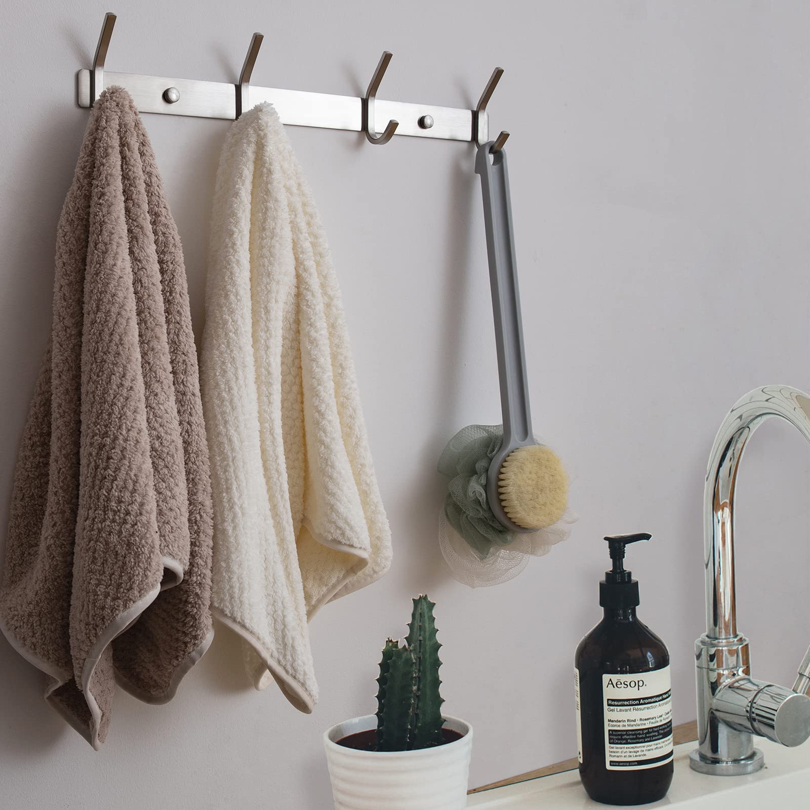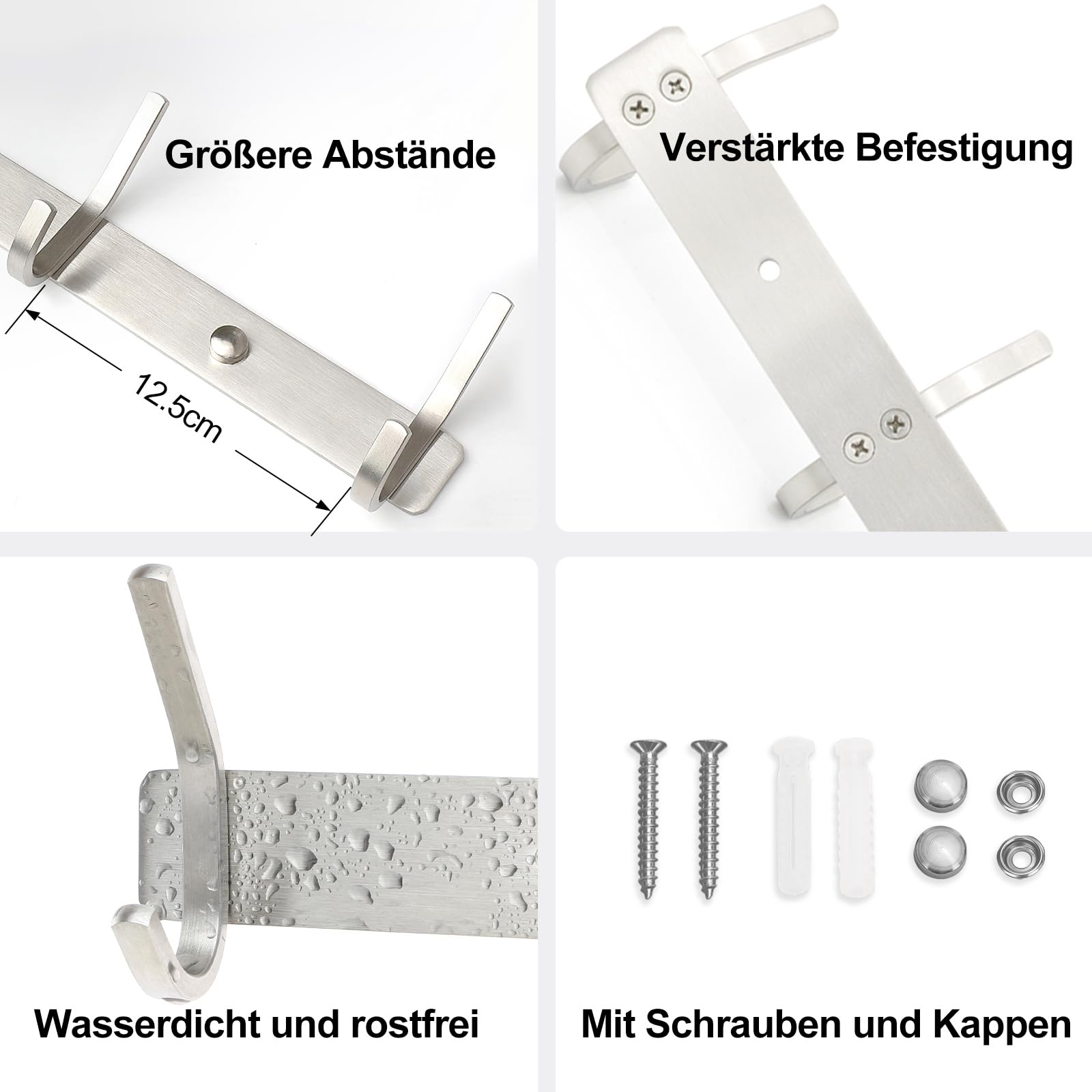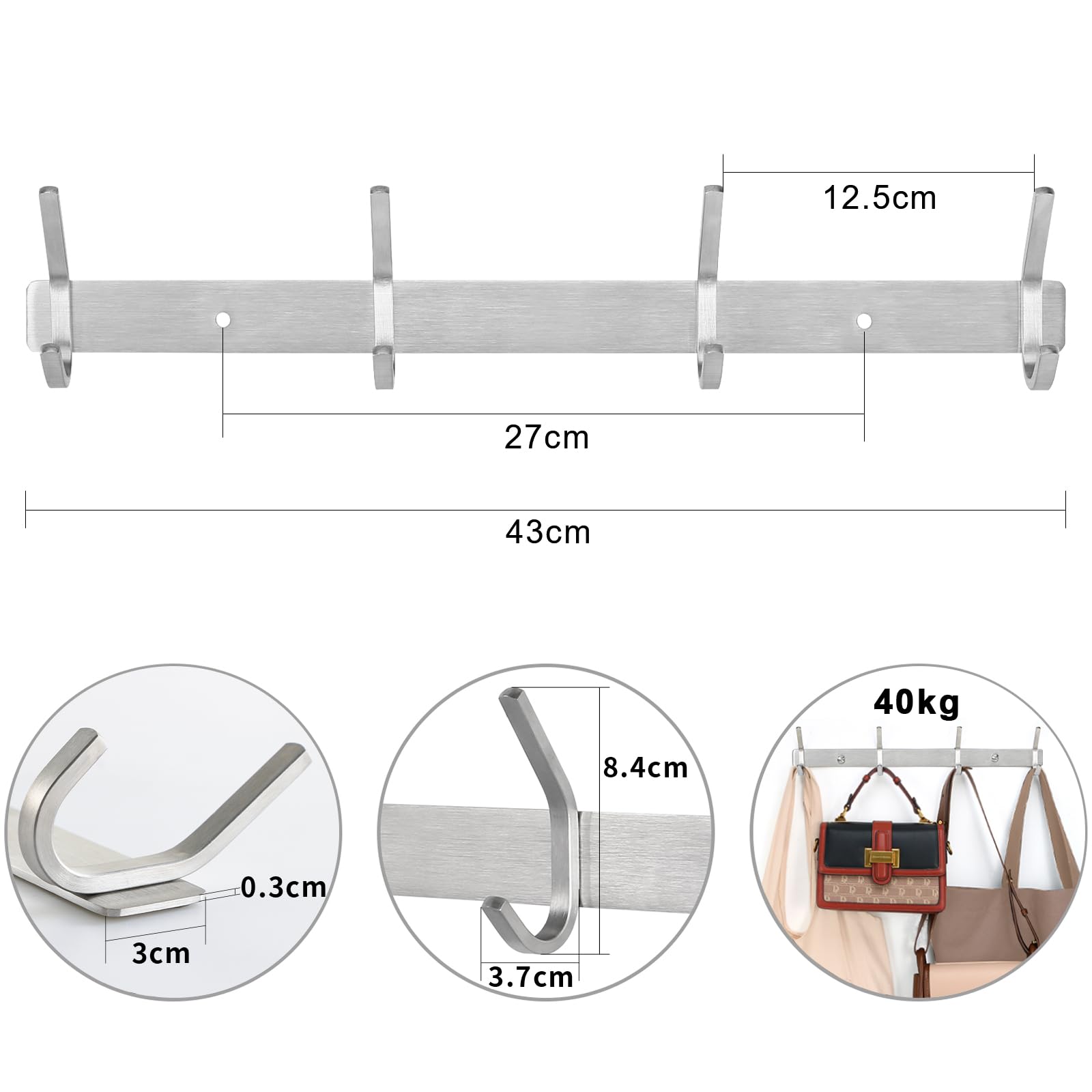 Qiannhee Hakenleiste Kleiderhaken 43cm bis 40kg Garderobenhaken Silber Matt 2 Stück SUS304 Edelstahl Kleiderhaken Wand Hakenleiste 4 Haken Garderobenleiste für Flur Küche Badezimmer Tür Wohnzimmer