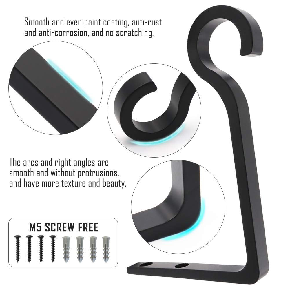 QIEGL Hängende Pflanzenhalterung aus Metall, 15.2 cm, Hirtenhaken, dekorativer Wandaufhänger zum Aufhängen von Laternen, Vogelfutterspender, Heimdekoration für drinnen und draussen, 2 Stück (schwarz)
