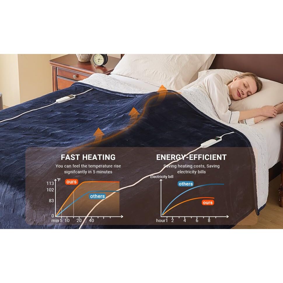 • Energieeffizient und vielseitig einsetzbar: Dank des energieeffizienten Designs mit niedrigem Stromverbrauch bleibt die Heizdecke eine kostengünstige Lösung für Ihre Wärmebedürfnisse. Ob zu Hause, im Büro oder unterwegs diese Heizdecke bietet zuverlässige Wärme und Komfort, ohne Ihr Budget zu belasten.