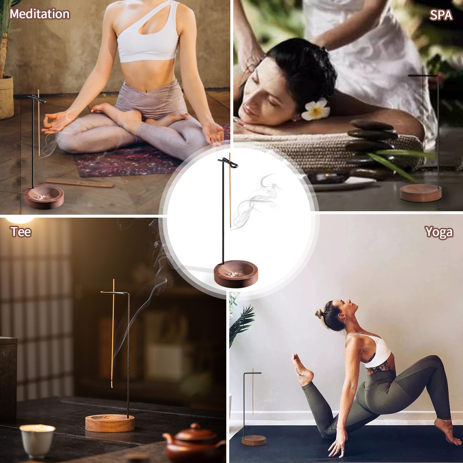 qingmeng Räucherstäbchen Halter, 5-in-1 Incense Holder, Räucherstäbchenhalter Holz Incense Burner Räucherstäbchen Halterung Räuchergefäss Weihrauchbrenner für Räucherkegel Meditation Zubehör
