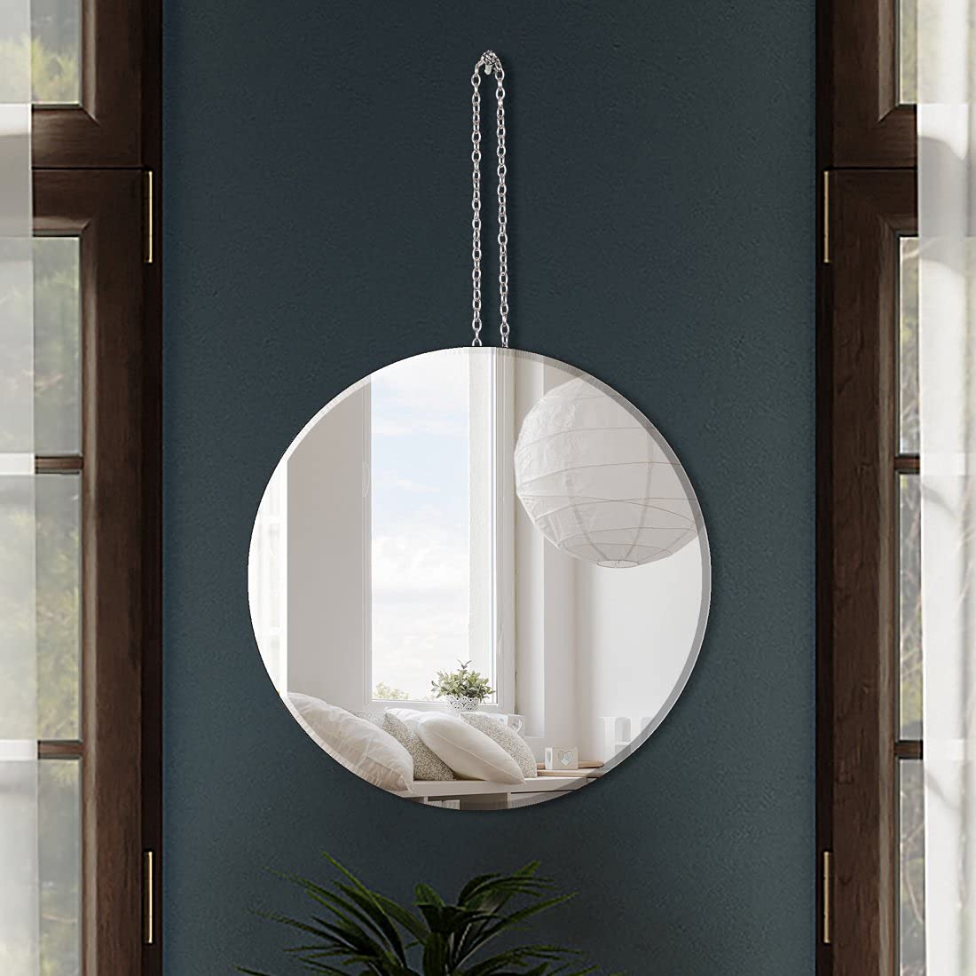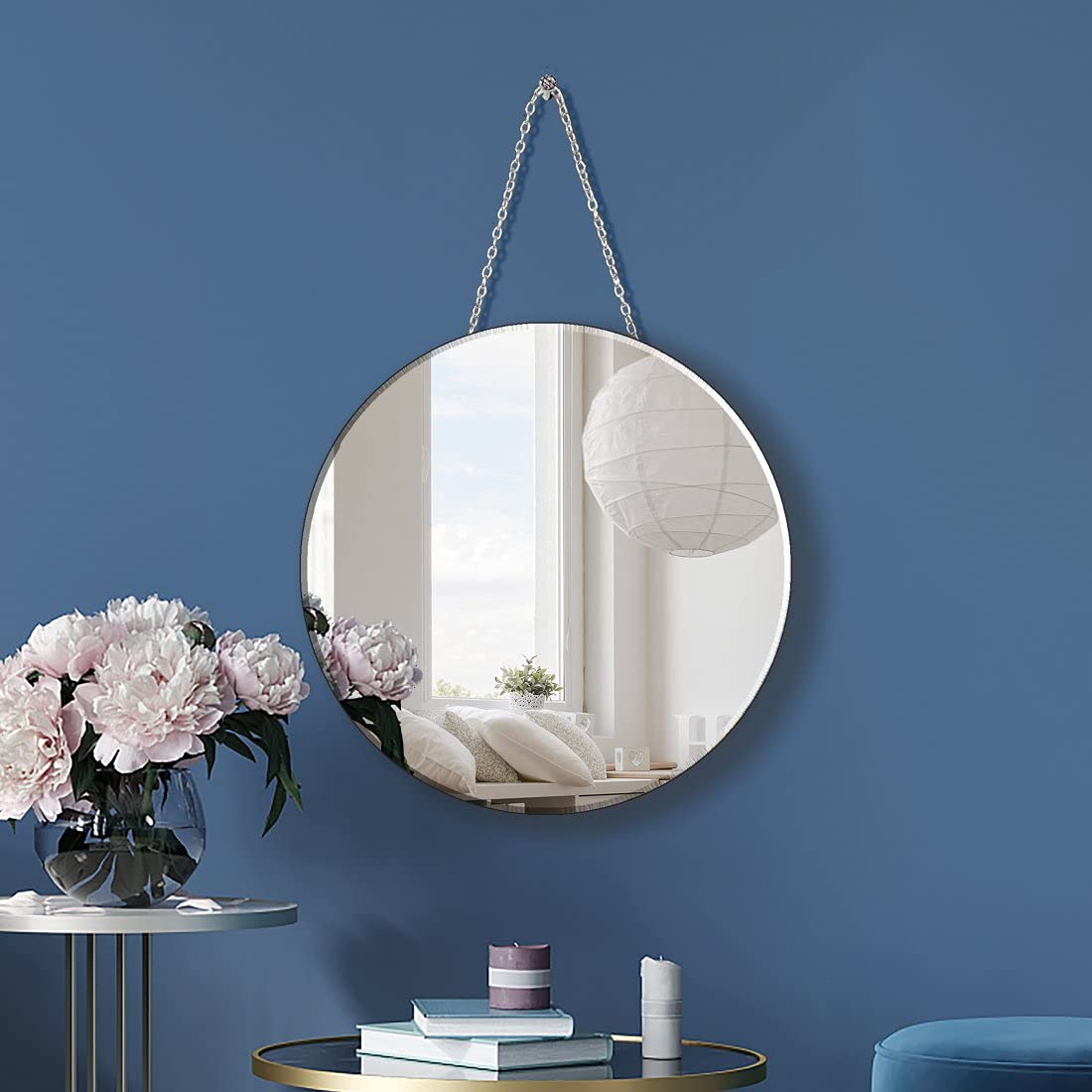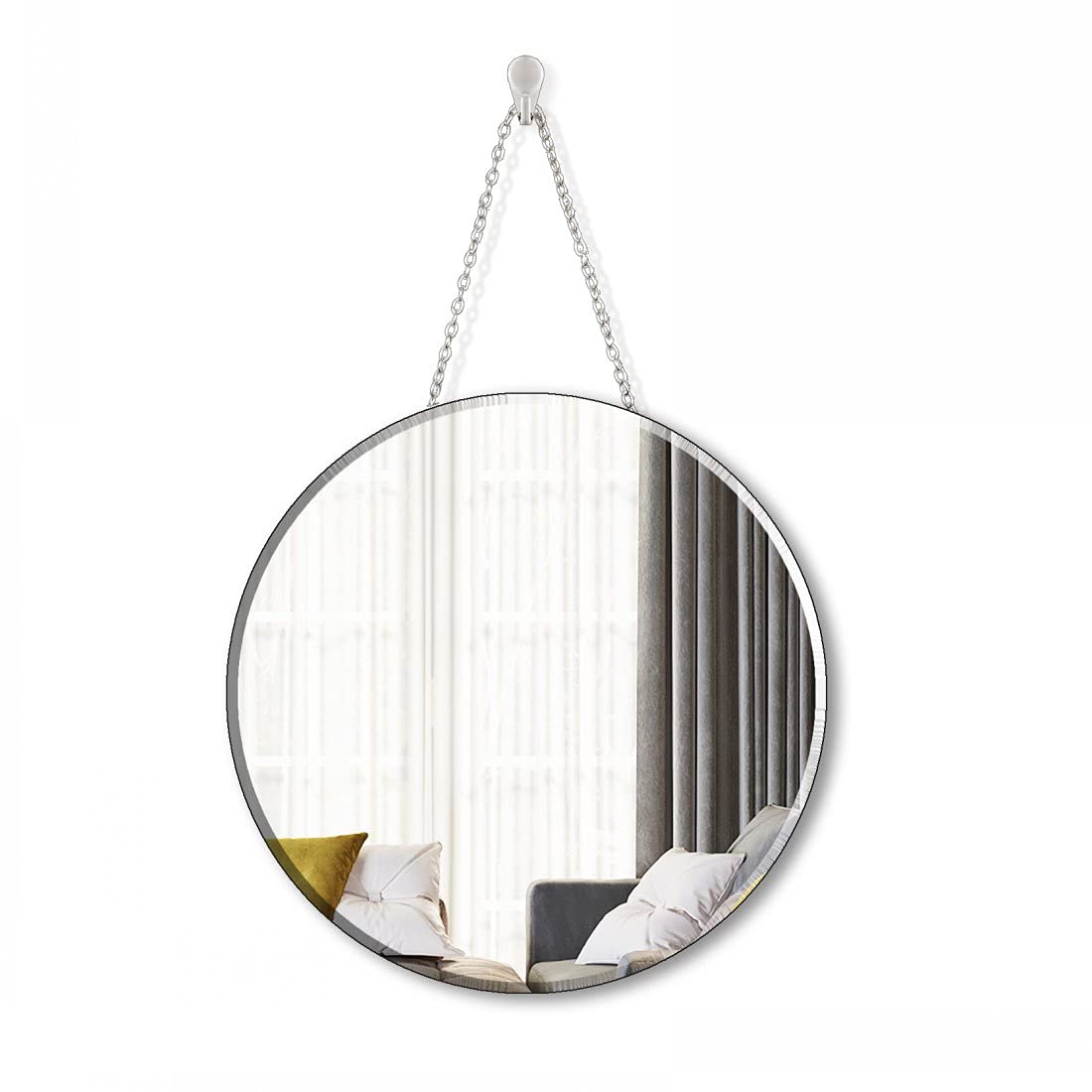 - Einfach zu installieren. Hammer Nagel um den weissen Aufhänger an der Wand zu befestigen, dann hängen Sie den Spiegel einfach mit einer Eisenkette auf. Oder verwenden Sie einfach die 2 Aufhänger auf der Rückseite. 2 Optionen.