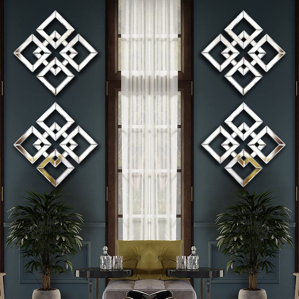 QMDECOR 2 Stück silberfarbene, verspiegelte Wanddekoration, 31x31 cm, dekorativer Spiegel, Moderne Mode, DIY-Wandspiegel, quadratisch, wunderschön, schicker Spiegel für Zimmer, Heimdekoration