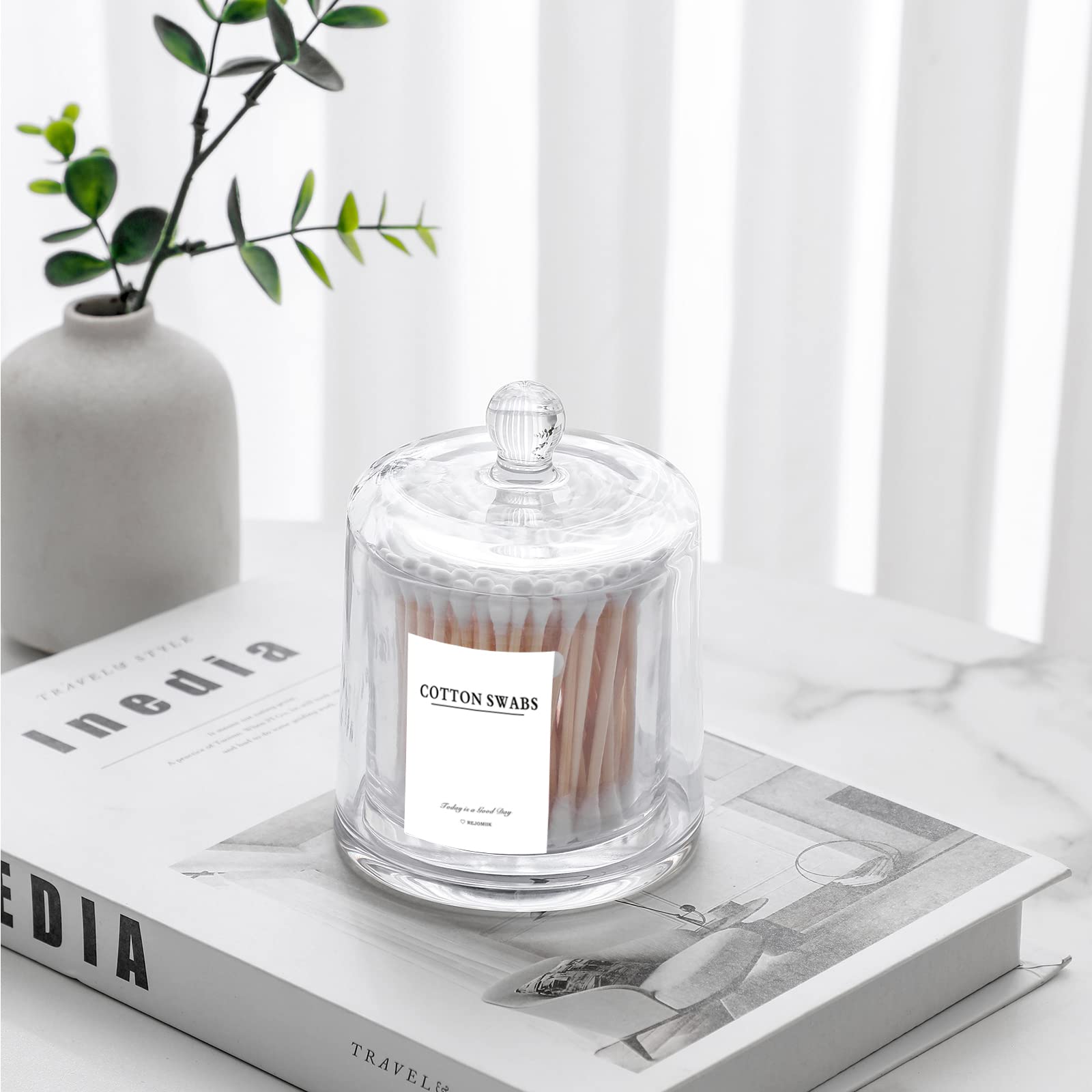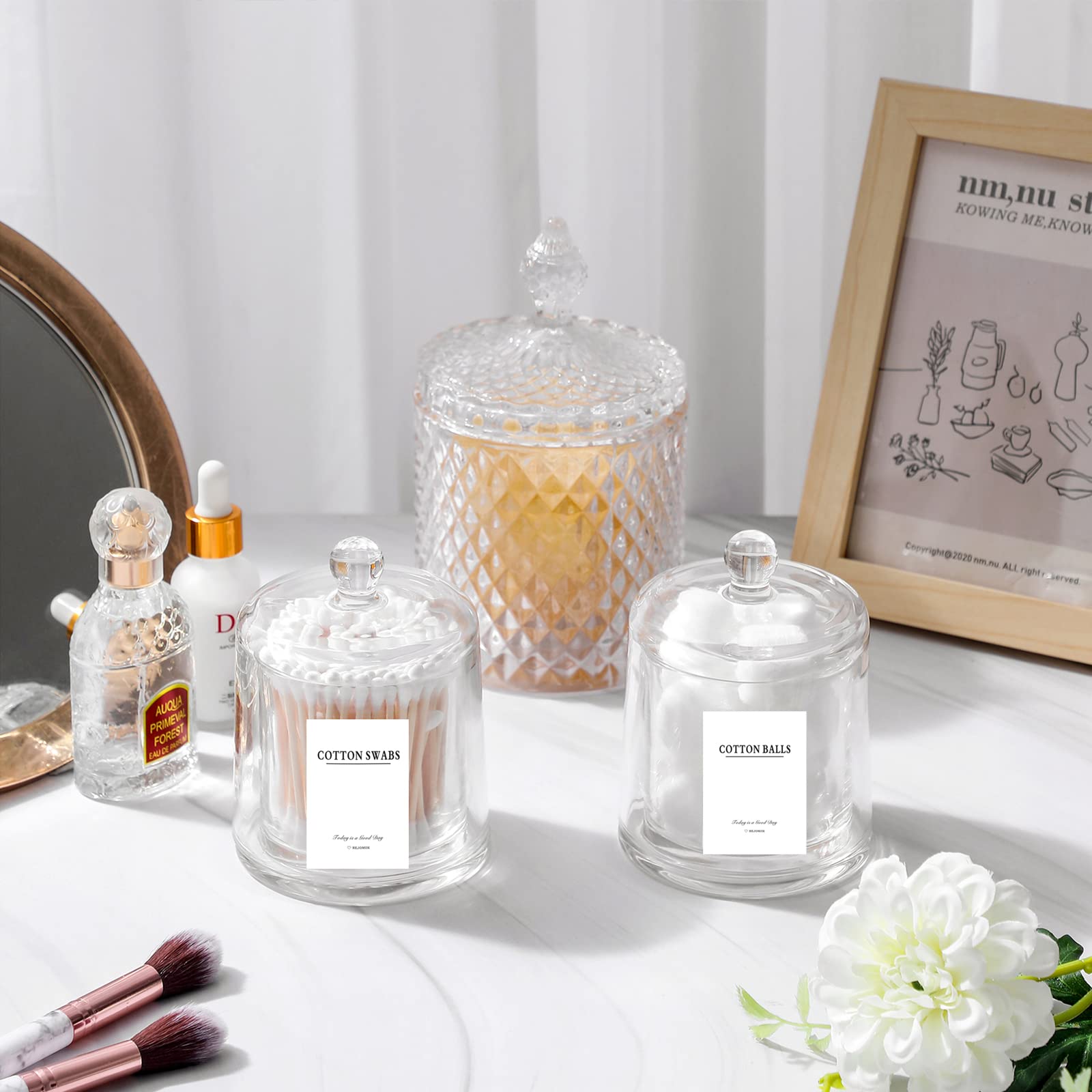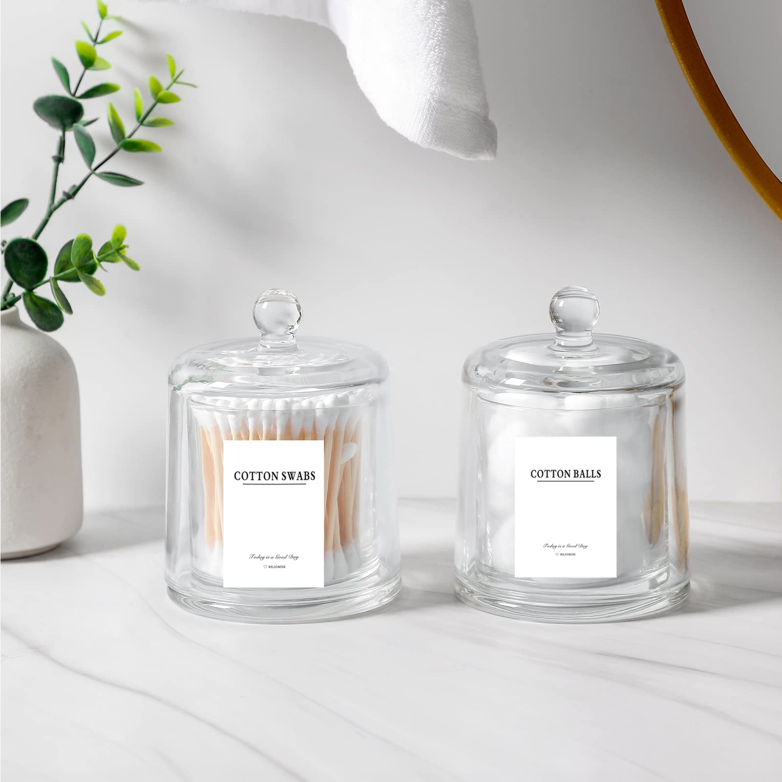 Qtip Halter Dicke Glas-Apothekergläser mit Deckel für Badezimmerzubehör, Schminktisch-Organizer und Make-up-Aufbewahrung für Wattebälle, Tupfer, Badezimmer-Dekor, 2 Stück transparent