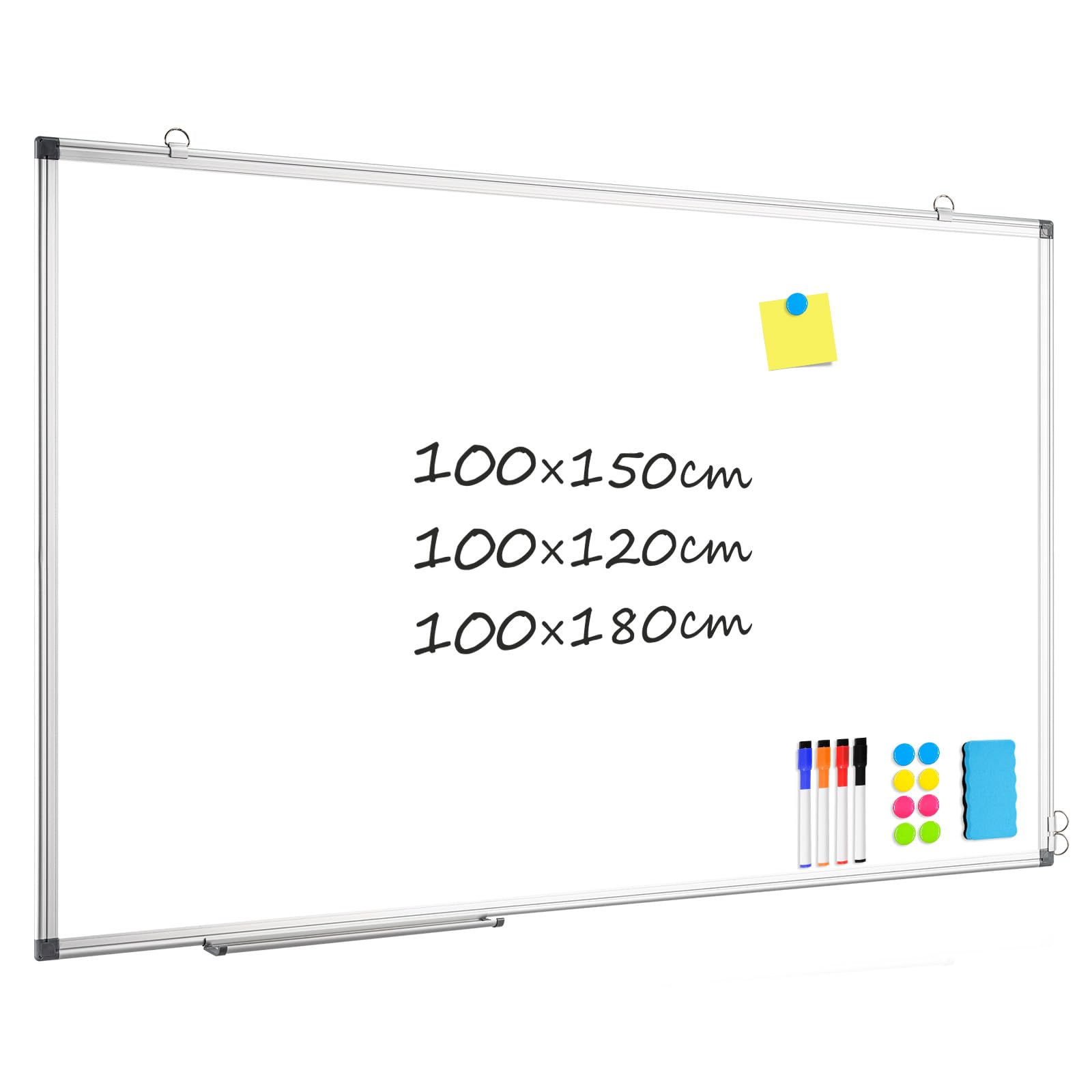 QUEENLINK Whiteboard 100×150cm Whiteboard Magnetisch, Magnettafel mit Aluminiumrahmen, Magnetwand White Board mit Stiftablage und Haken