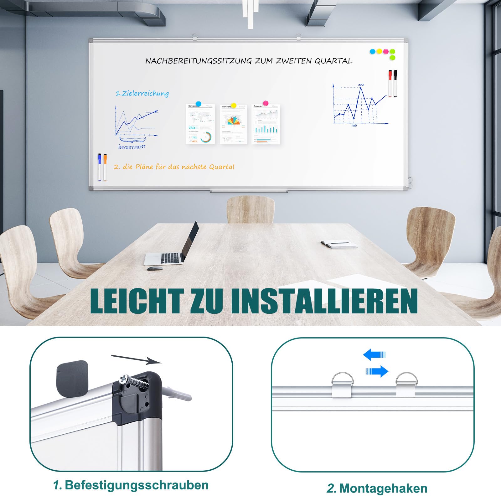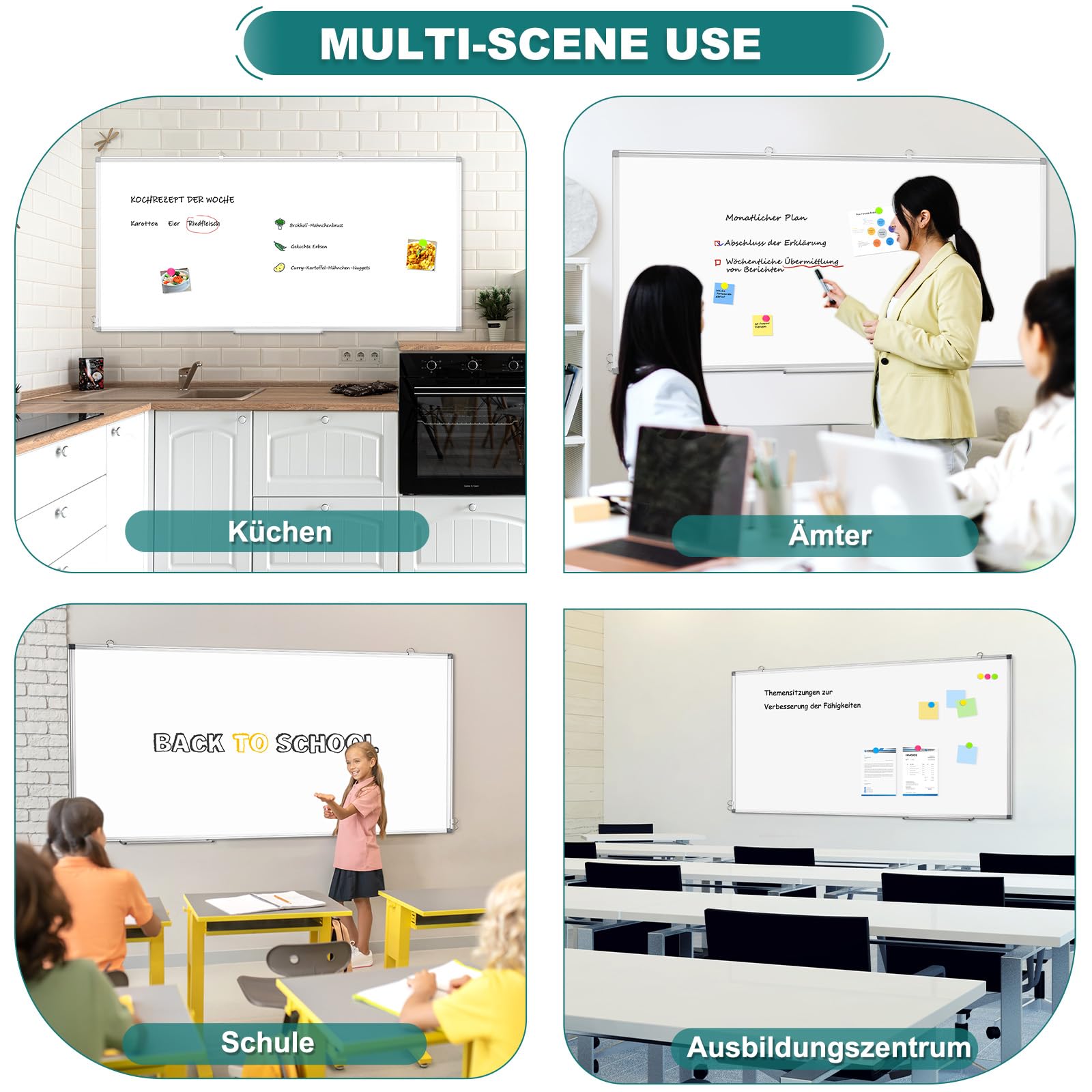 - 【Magnetisch & trocken abwischbar】 -- Die kratzfeste Stahloberfläche sorgt für ein glattes Schreibgefühl und lässt sich leicht mit Markern trocken abwischen. Die Struktur des verzinkten Blechs auf der Rückseite sorgt für eine hervorragende magnetische Leistung der Oberfläche.