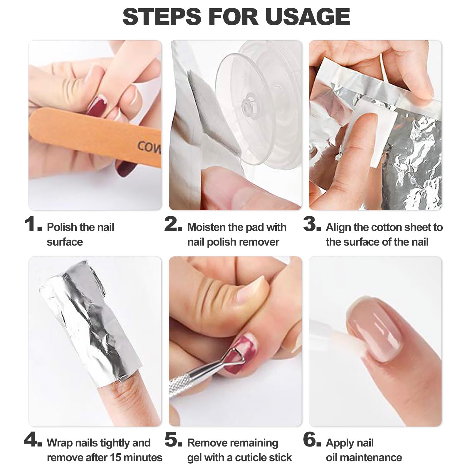 Die Qufiiry Nail Polish Remover Wraps Pads sind praktische Entfernungsfolien fuer die schnelle und saubere Entfernung von UV-Gellack, Shellac und klassischem Nagellack. Jedes Pad kombiniert ein saugfaehiges Wattepad mit stabiler Aluminiumfolie und laesst sich sicher um den Finger fixieren.