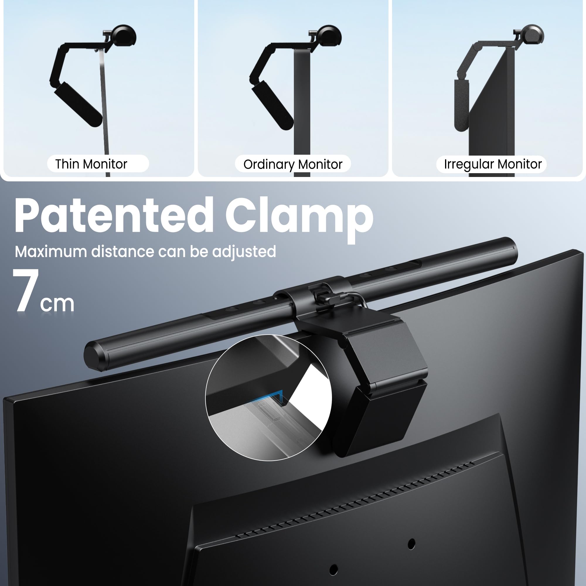 - 【Anti-Blaues Licht - Augenschonende Ausleuchtung am PC Arbeitsplatz】Die Monitor Light Bar sitzt oben auf dem Monitor, strahlt nur nach unten und vorne, leuchtet perfekt und gleichmässig den Bereich vor dem Monitor, sprich Tastatur usw aus. Die Monitor-Beleuchtung hat keine Blendung, kein Flackern und kein Schatten und Anti-Blaulicht. Arbeiten, Lernen und Spielen kann jetzt nachts am PC wieder Freude bereiten, denn Ihre Augen werden vor Übermüdung verschont